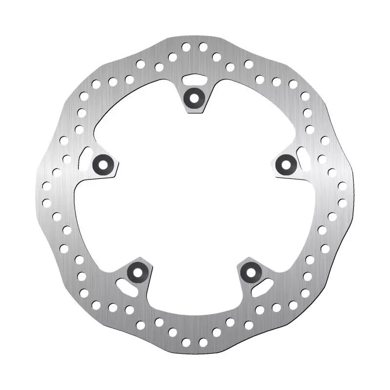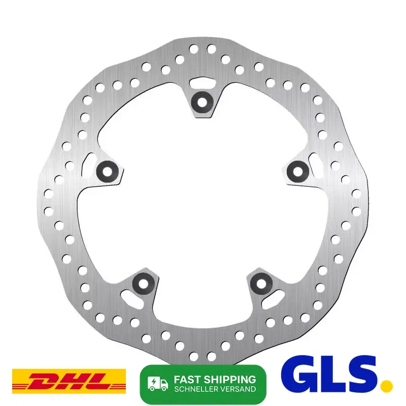 Lepsze chłodzenie – falista konstrukcja poprawia przepływ powietrza, co redukuje przegrzewanie. Niższa masa – lżejsza konstrukcja zmniejsza masę nieresorowaną, poprawiając prowadzenie motocykla. Skuteczniejsze odprowadzanie zanieczyszczeń – kształt tarczy ułatwia usuwanie wody, błota i pyłu hamulcowego. Lepsza przyczepność klocków – nieregularny kształt poprawia kontakt powierzchni, zwiększając skuteczność hamowania.To rozwiązanie jest często stosowane w sportowych i terenowych motocyklach, gdzie liczy się wydajność i precyzja hamowania.