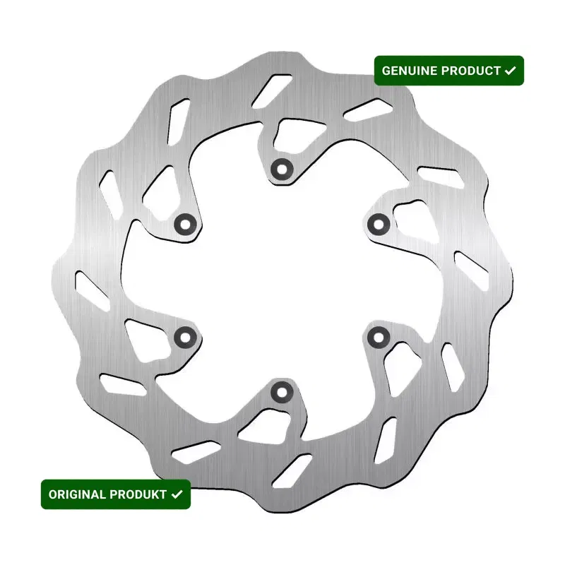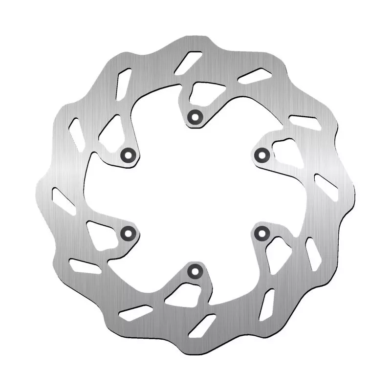 Lepsze chłodzenie – falista konstrukcja poprawia przepływ powietrza, co redukuje przegrzewanie. Niższa masa – lżejsza konstrukcja zmniejsza masę nieresorowaną, poprawiając prowadzenie motocykla. Skuteczniejsze odprowadzanie zanieczyszczeń – kształt tarczy ułatwia usuwanie wody, błota i pyłu hamulcowego. Lepsza przyczepność klocków – nieregularny kształt poprawia kontakt powierzchni, zwiększając skuteczność hamowania.To rozwiązanie jest często stosowane w sportowych i terenowych motocyklach, gdzie liczy się wydajność i precyzja hamowania.
