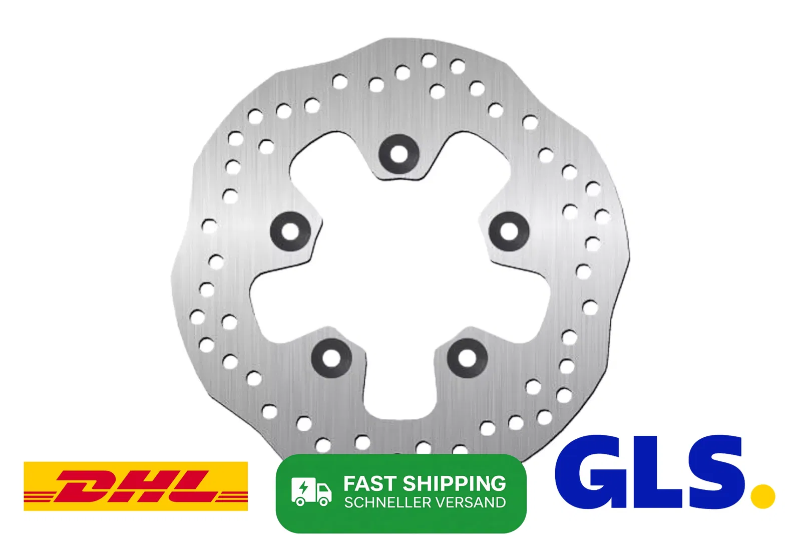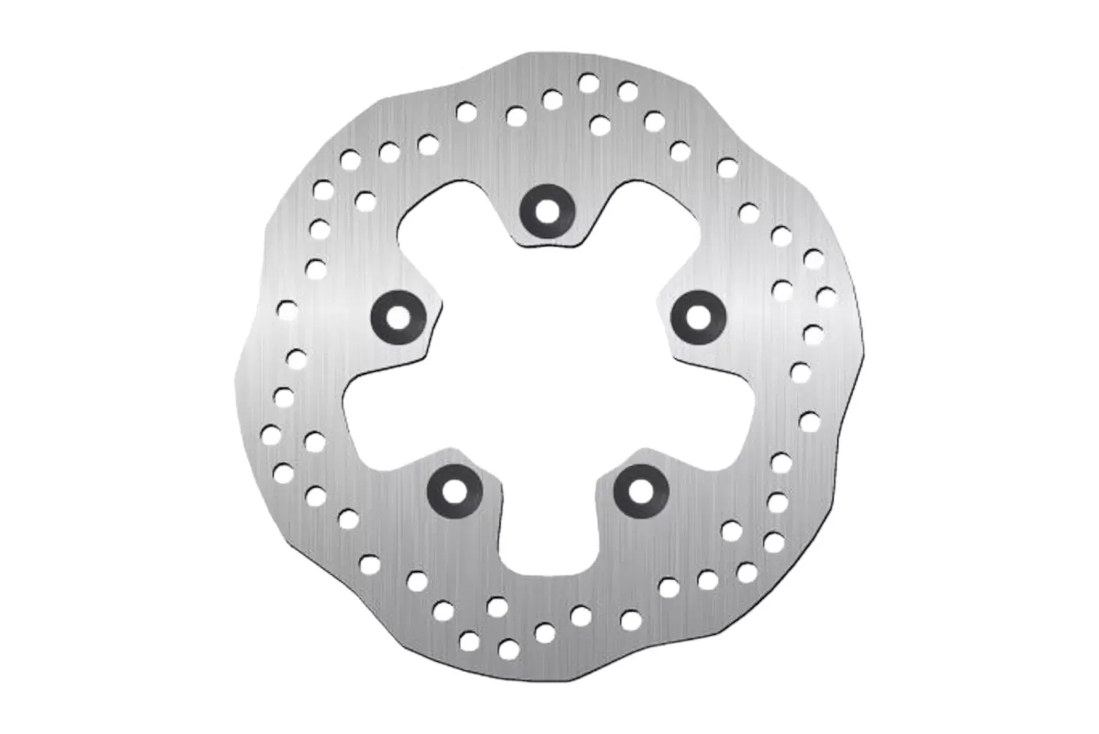 Lepsze chłodzenie – falista konstrukcja poprawia przepływ powietrza, co redukuje przegrzewanie. Niższa masa – lżejsza konstrukcja zmniejsza masę nieresorowaną, poprawiając prowadzenie motocykla. Skuteczniejsze odprowadzanie zanieczyszczeń – kształt tarczy ułatwia usuwanie wody, błota i pyłu hamulcowego. Lepsza przyczepność klocków – nieregularny kształt poprawia kontakt powierzchni, zwiększając skuteczność hamowania.To rozwiązanie jest często stosowane w sportowych i terenowych motocyklach, gdzie liczy się wydajność i precyzja hamowania.