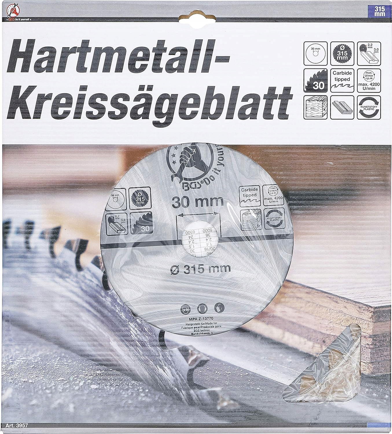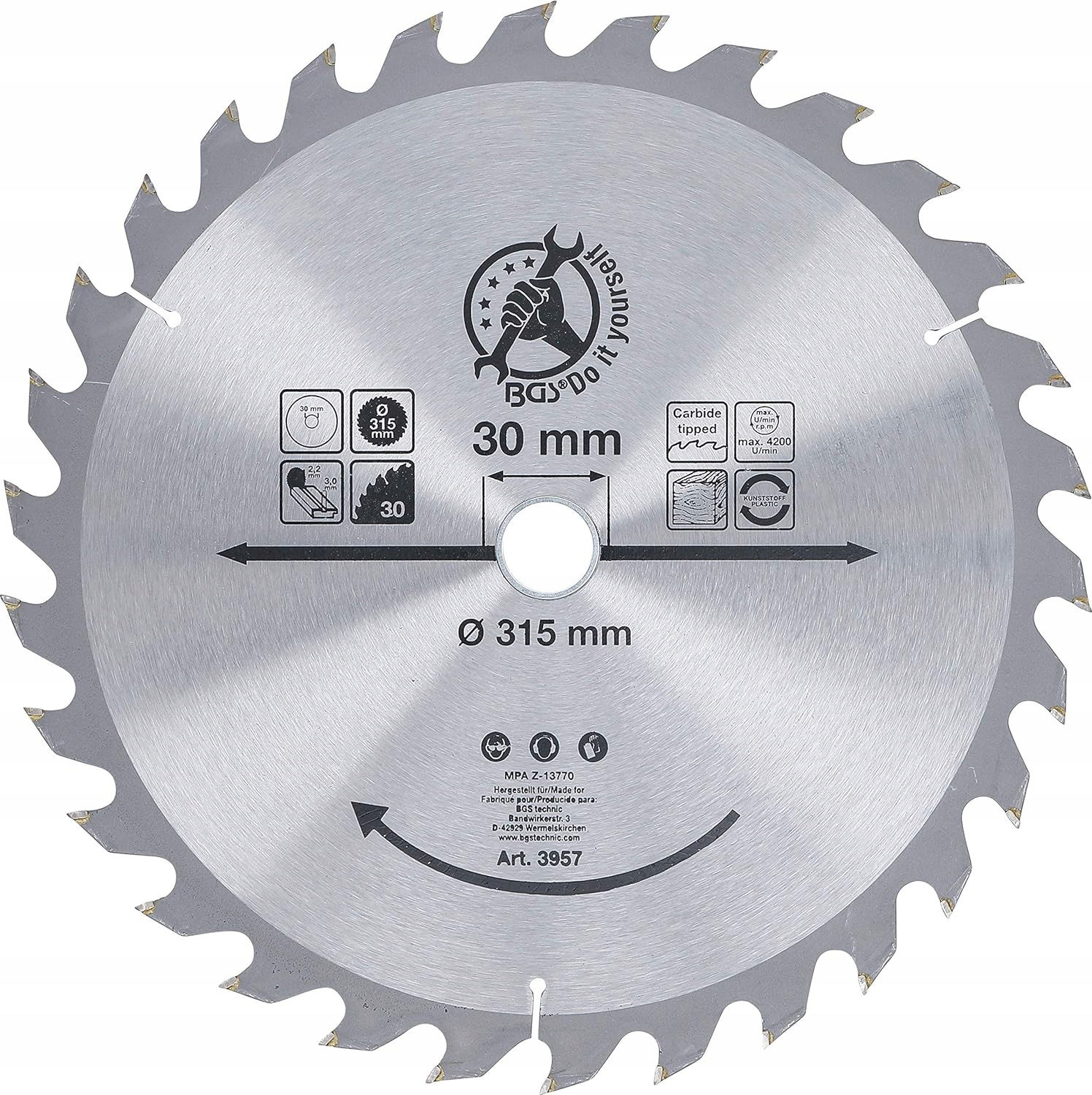BGS Diy 3957 Tarcza pilarska z węglika spiekanego Ø 315x30x3,0 mm 30 zębów