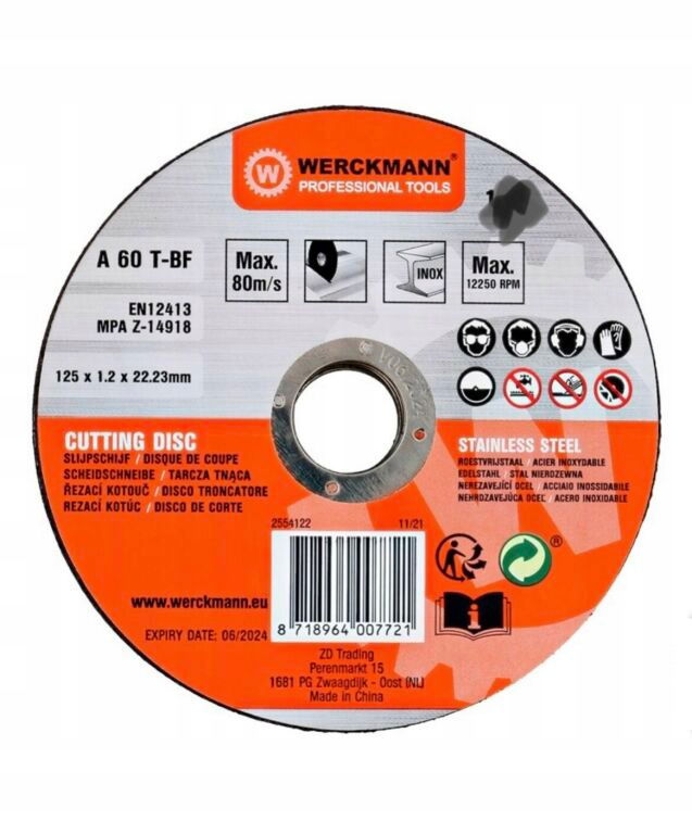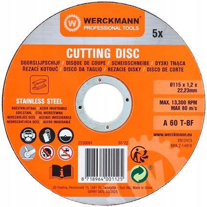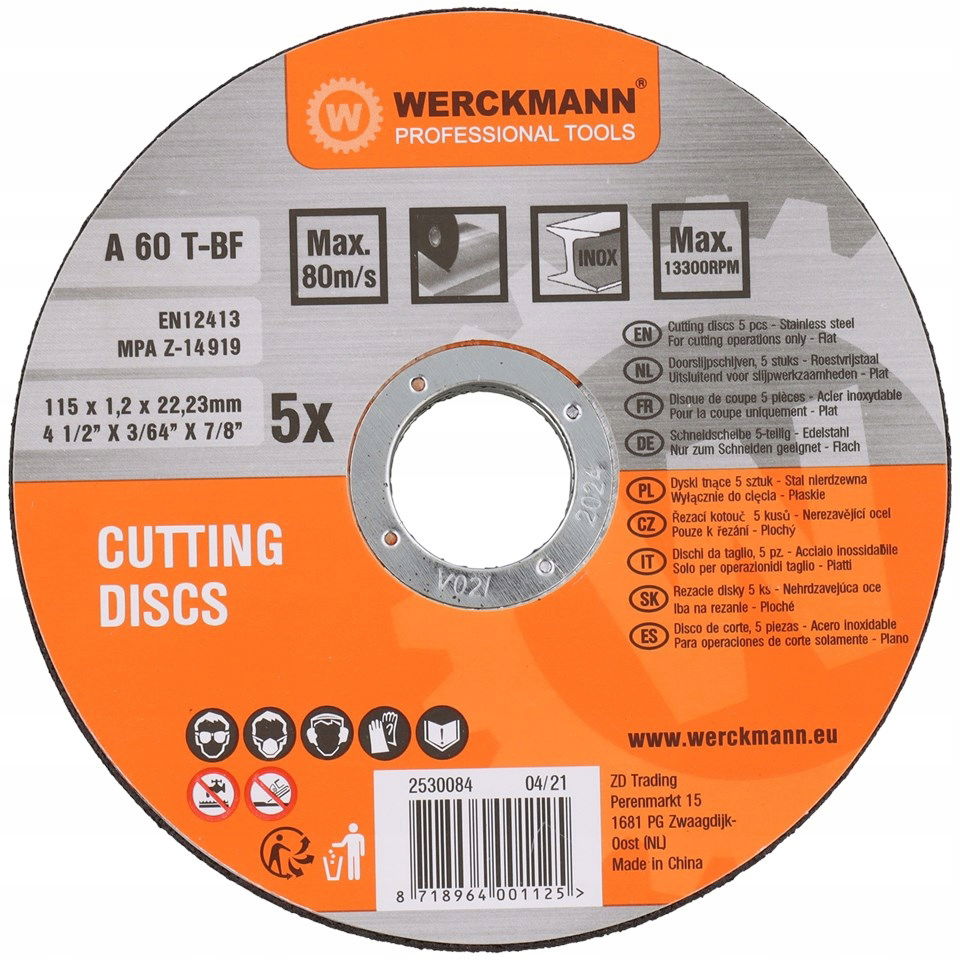 TARCZA TARCZE DO CIĘCIA STALI DO SZLIFIERKI KĄTOWEJ WEERCKMAN 5 SZTUK