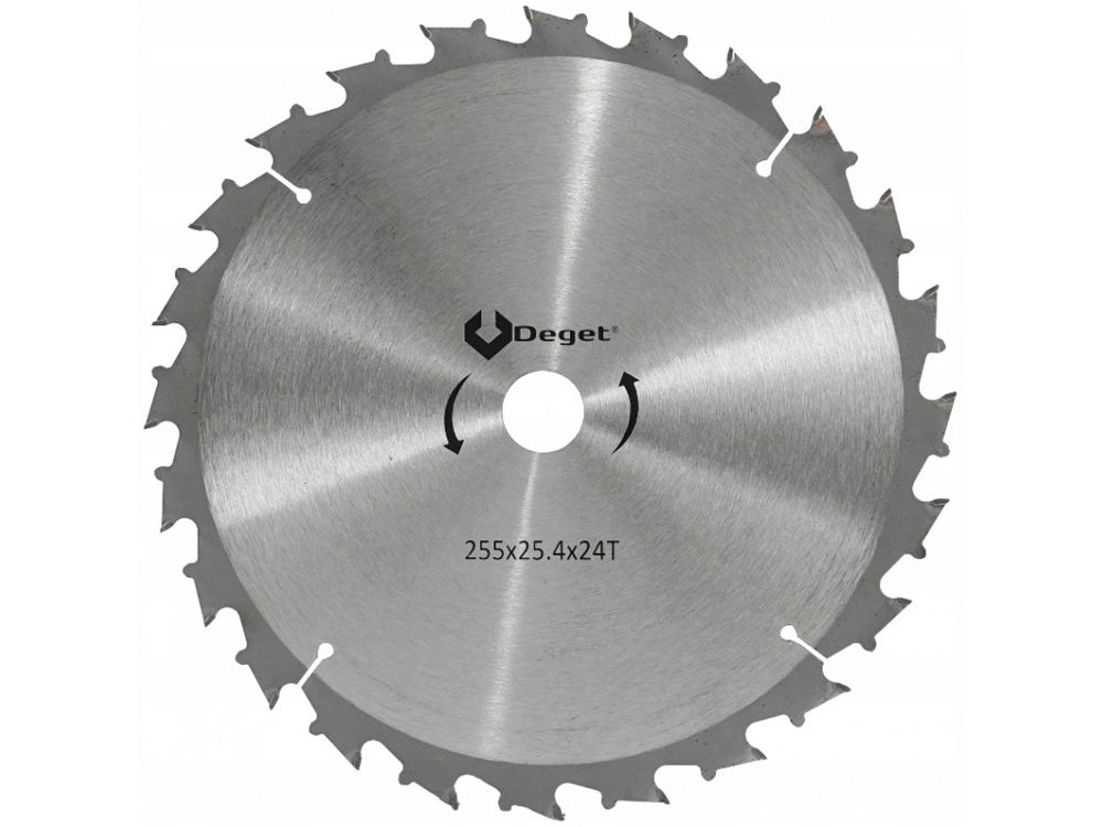 Specjalna tarcza tnąca z widią marki Deget, o wymiarach 255x25.4 mm z 24 zębami tnącymi - do zastosowania z kosami oraz podkaszarkami spalinowymi.