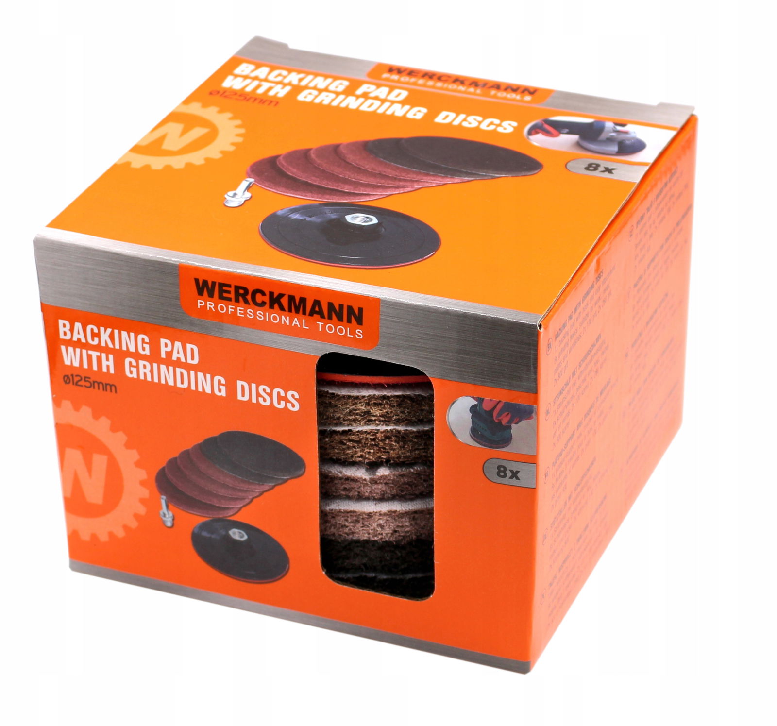 Tarcze szlifierskie z włókniny 125mm x6 sztuk + krążek i trzpień Werckmann