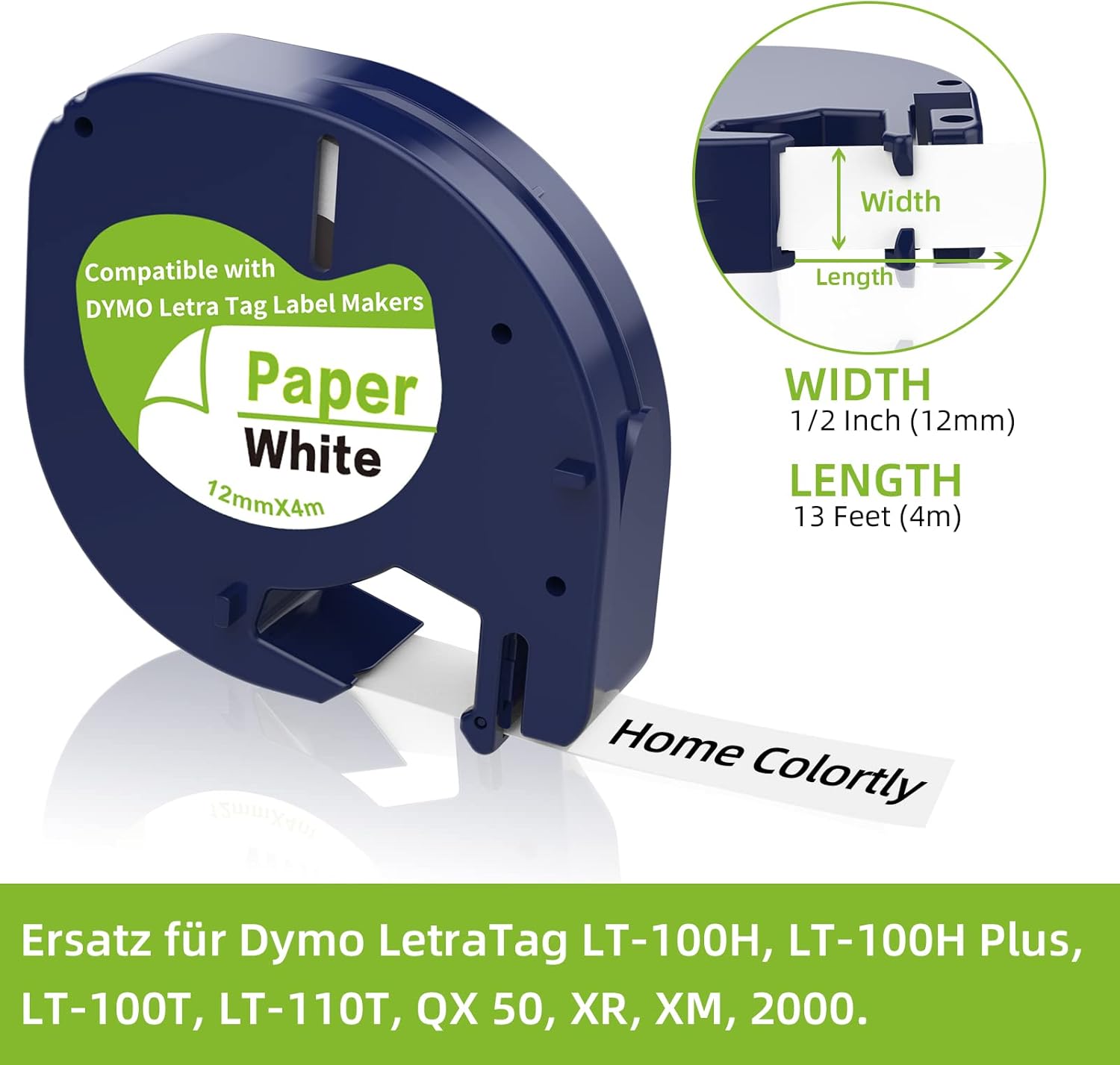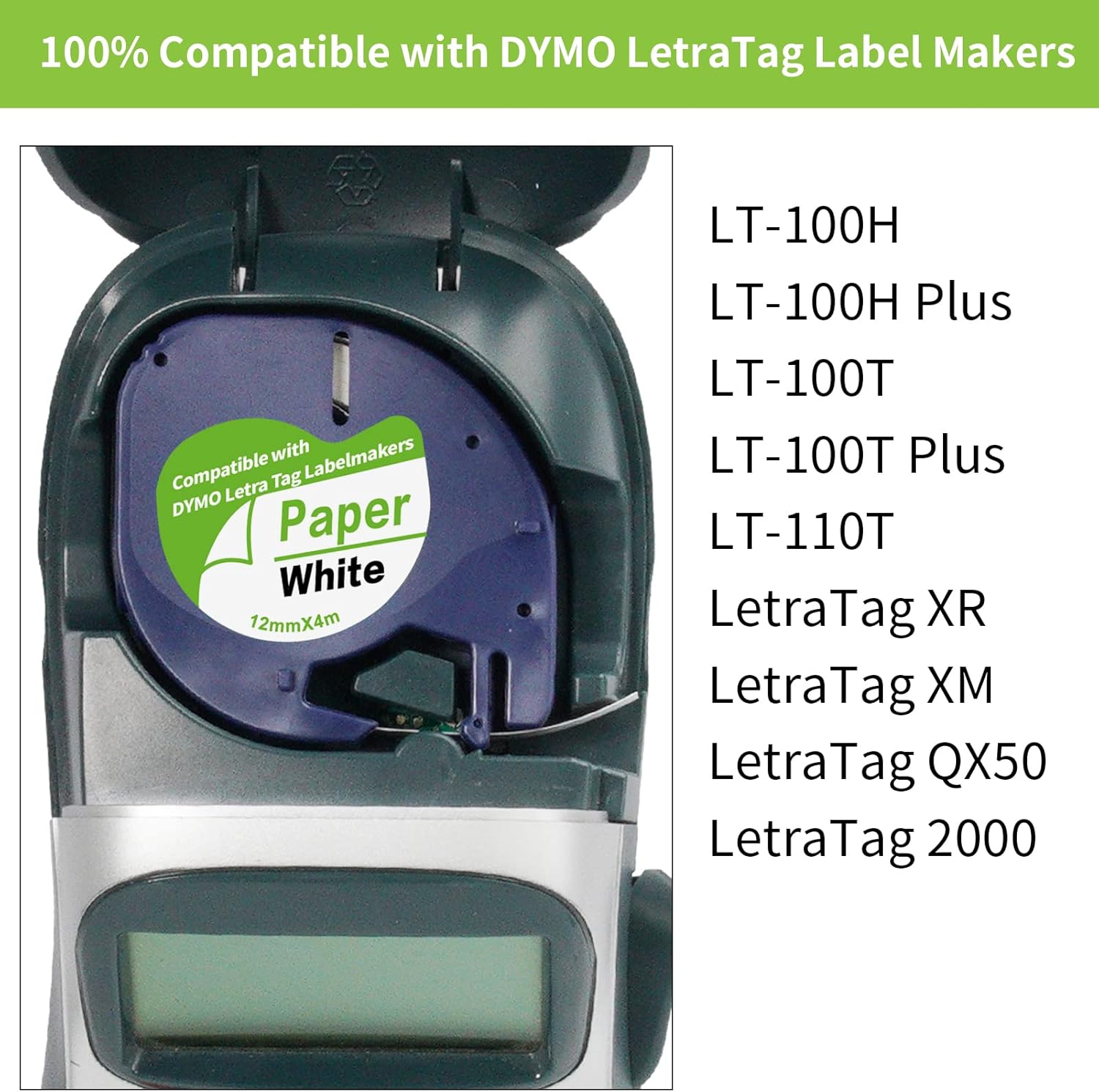 2 x taśma do etykietowania kompatybilna z DYMO LetraTag 12 mm x 4 m, czarny nadruk na białym papierze do etykietowania działa dla maszyn do etykietowania Dymo letratag XR LT-100H