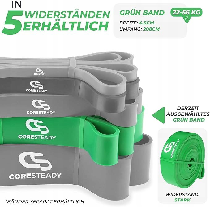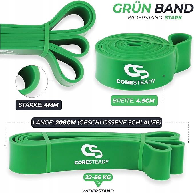 ✔️ Idealny opór – nasze taśmy do podciągania umożliwiają Ci optymalny trening. Rezystory są starannie testowane, aby móc stopniowo pracować nad swoją fitness. Nasza zielona taśma do podciągania zapewnia opór 22-56 kg i zapewnia, że opanujesz ćwiczenia budujące mięśnie już po kilku powtórzeniach.