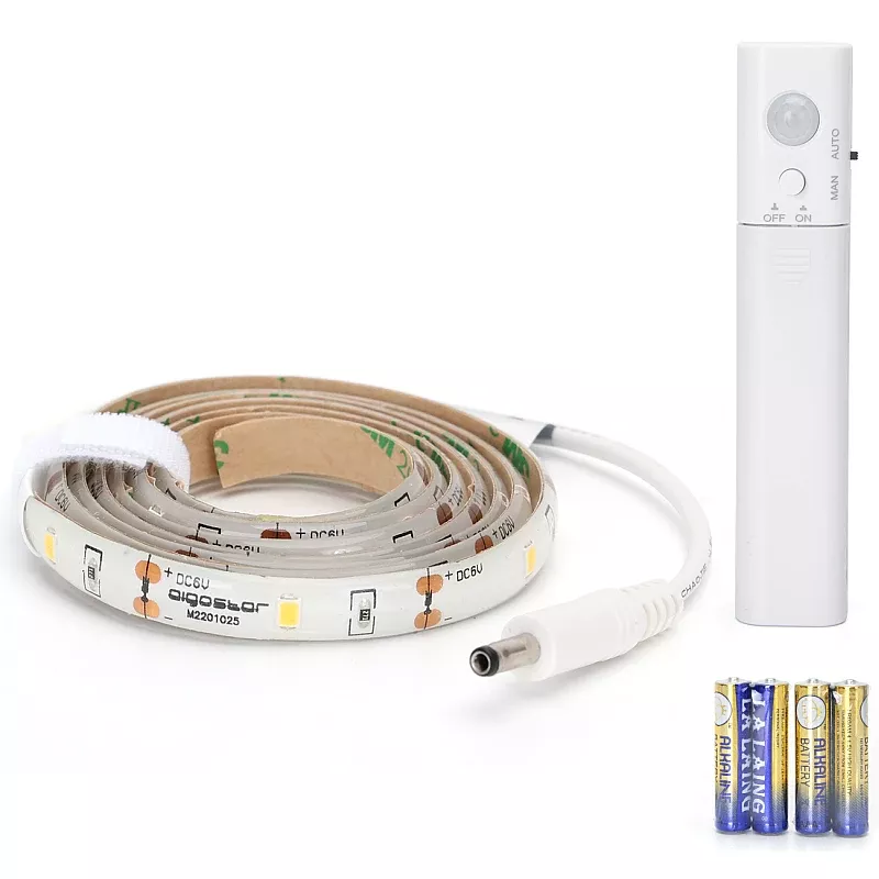 Idealne rozwiązanie jako oświetlenie do szafy z ubraniami, podświetlenie schodów, korytarza lub szafki kuchennej. Taśma led z czujnikiem ruchu i zmierzchu LED do zastosowania w szafie, w kuchni lub nocne oświetlenie korytarza. Czujnik wykrywa ruch w odległości od 1 do 4m, a czujnik zmierzchu pozwala na włączenie oświetlenia tylko w nocy. Zasilane z 4 baterii R-3 AAA (małe paluszki) daje możliwość zastosowania taśmy praktycznie wszędzie np. na korytarzu, pod schodami, na klatce chodowej, w przyczepie kempingowej lub łodzi. Taśma z diodami jest wodoodporna, ale czujnik ruchu i zmierzchu już nie.