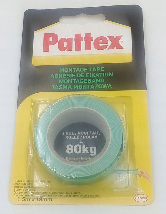 Taśma dwustronna montażowa zielona 80kg Pattex FIX bardzo mocna 19mm x 1,5m