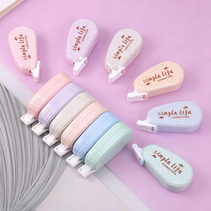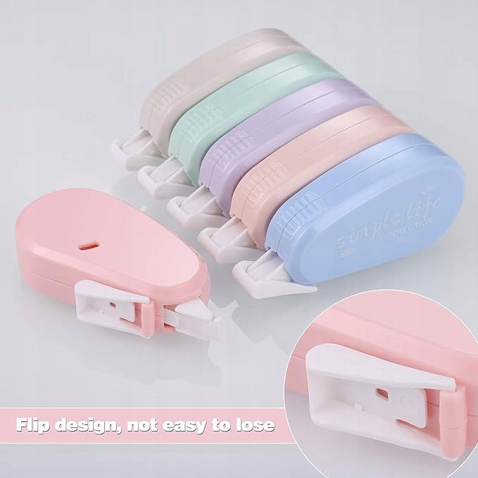 Bezpieczny materiał: rolka taśmy korekcyjnej jest wykonana z przezroczystej taśmy z folii PET, która jest nietoksyczna i przyjazna dla środowiska. Mini taśma korekcyjna ma odporność na rozdarcie, krycie i przyczepność.