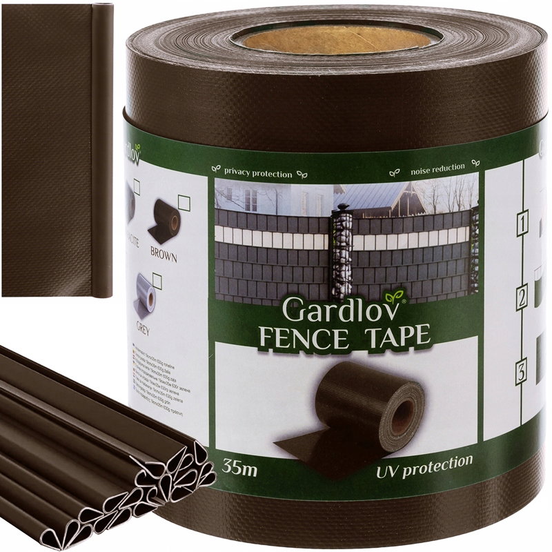 Taśma Ogrodzeniowa na Ogrodzenie Płot Osłona Brązowa 19cmx35m 630g + Klipsy