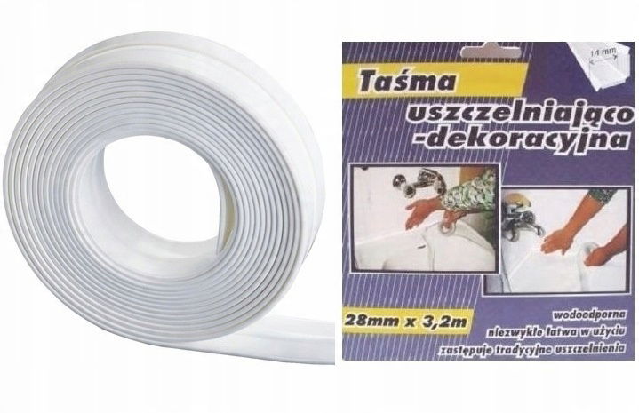 TAŚMA USZCZELNIAJĄCA WANNOWA 3,2m x 28mm DO WANNY KABIN SAMOPRZYLEPNA BIAŁA