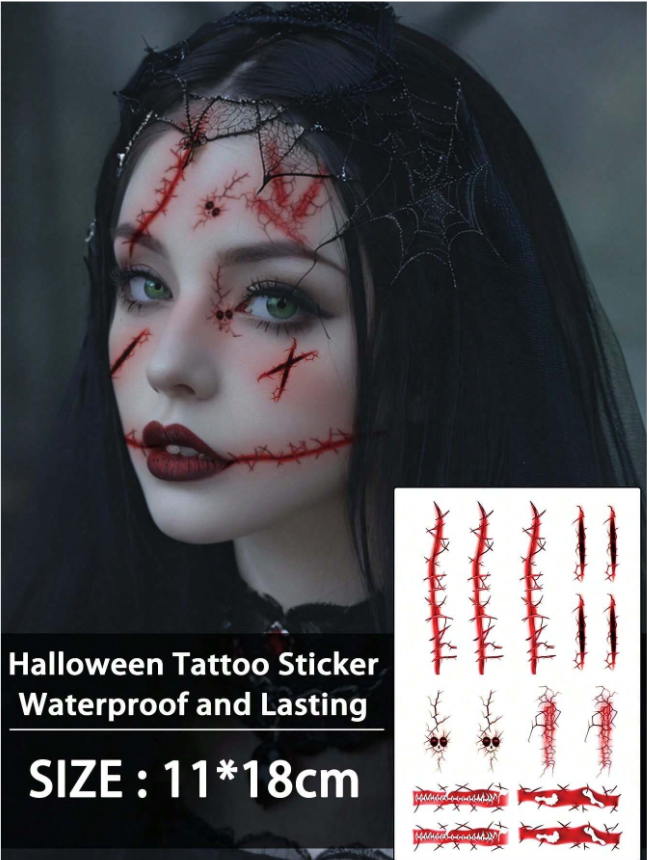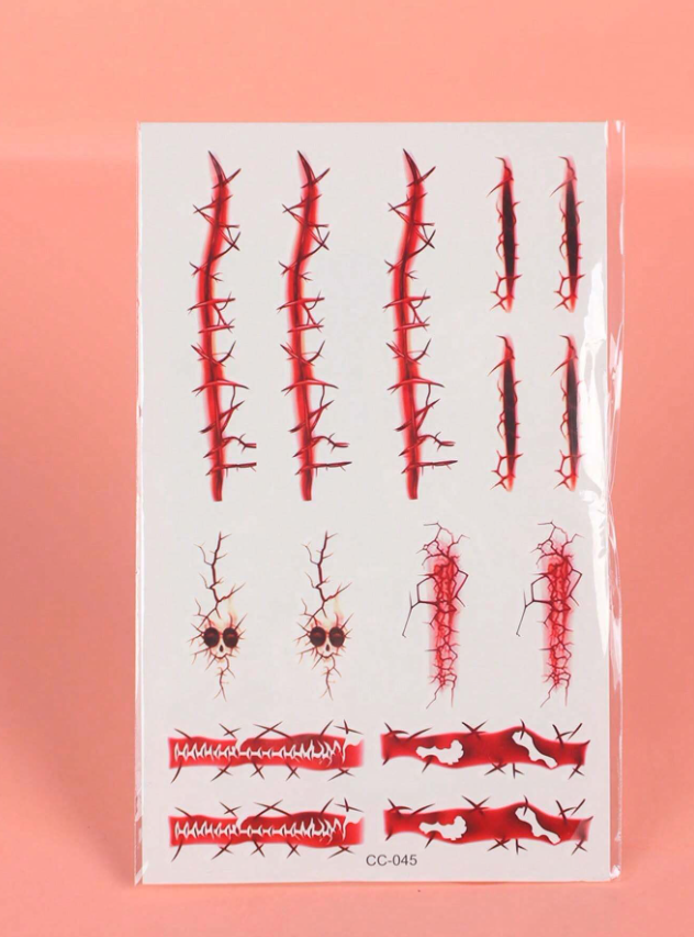 Jedyna sztuka TATUAŻ TYMCZASOWY JEDNORAZOWY HALLOWEEN FAŁSZYWE BLIZNY 1 ARKUSZ