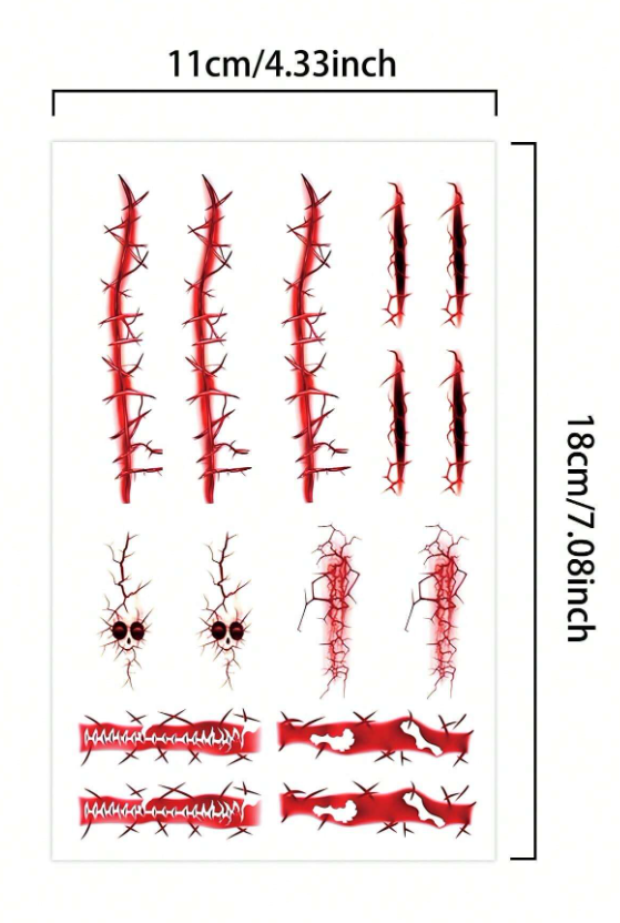 TATUAŻ TYMCZASOWY JEDNORAZOWY HALLOWEEN FAŁSZYWE BLIZNY 1 ARKUSZ
