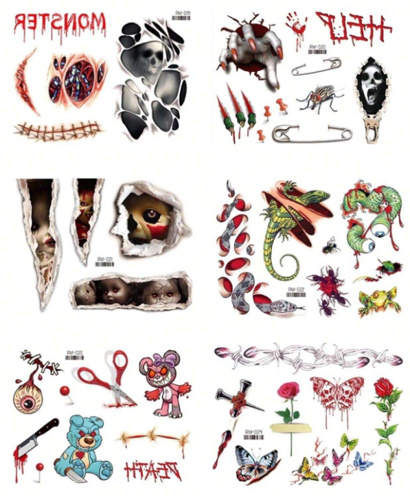 TATUAŻ TYMCZASOWY JEDNORAZOWY ZABAWNY HALLOWEEN 1 ARKUSZ