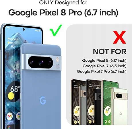 - Smukła konstrukcja i wygodny uchwyt: etui Tauri do telefonu Google Pixel 8 Pro, minimalna grubość dla maksymalnej ochrony, zaprojektowane specjalnie do telefonu Google Pixel 8 Pro, łatwo mieści się w kieszeniach, idealne do obsługi jedną ręką.