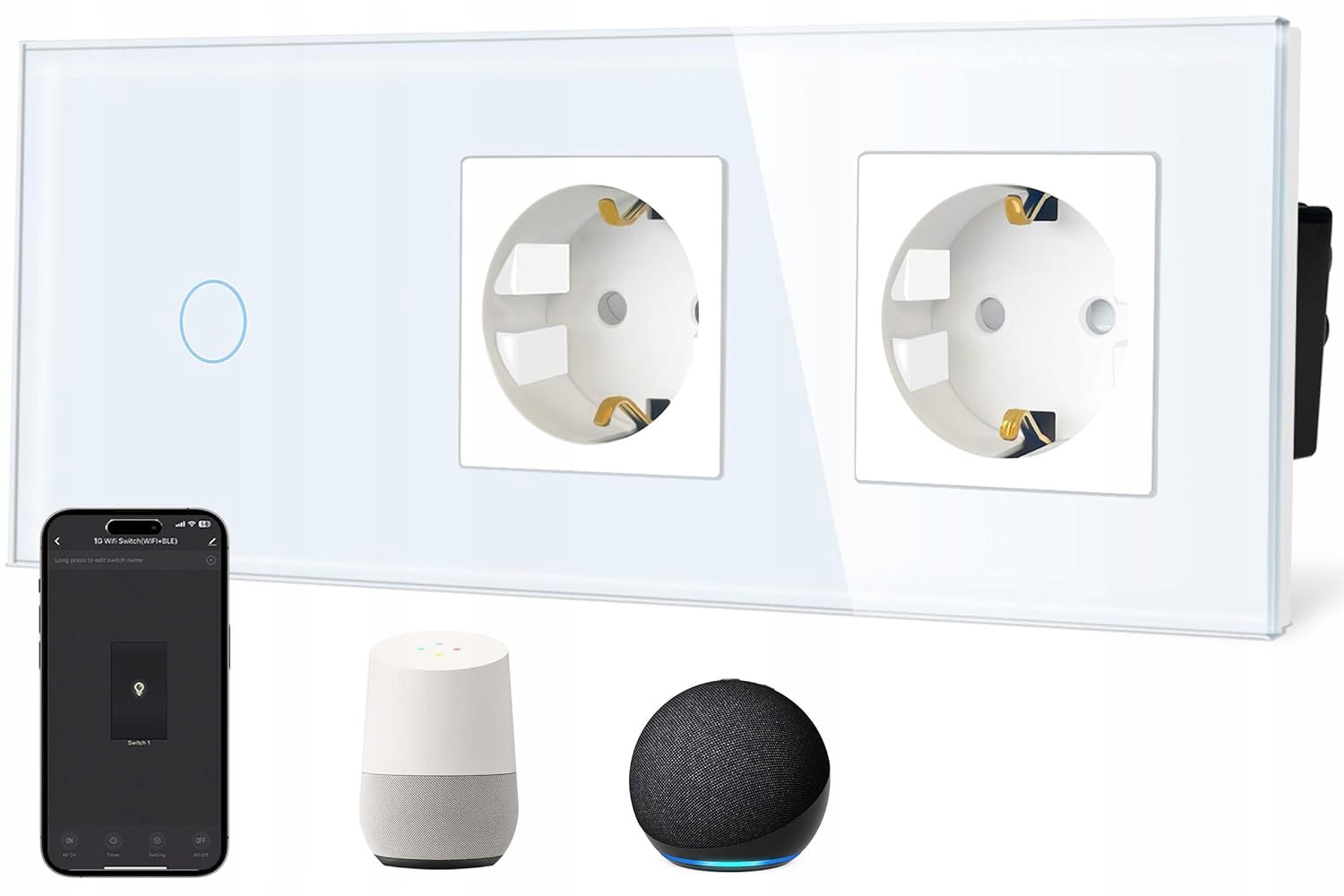 TAWOIA Smart WLAN Touch Włącznik Światła z Podwójnym Gniazdkiem – Sterowanie Głosowe i Aplikacją! �?