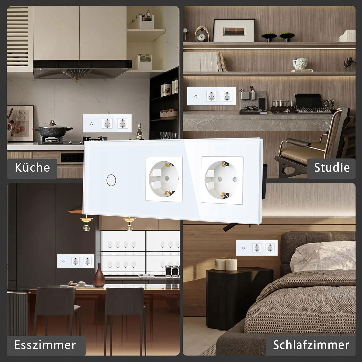- Zawartość zestawu: Włącznik światła z podwójnym gniazdkiem, instrukcja obsługi