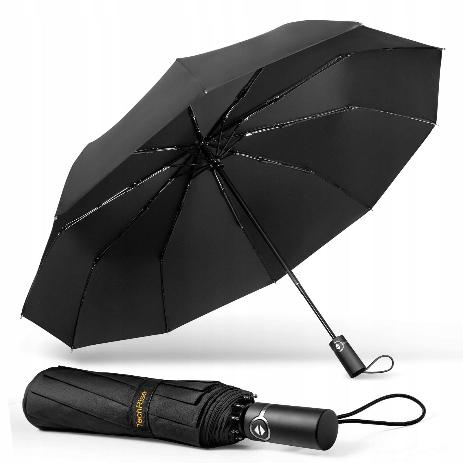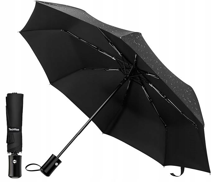 TechRise Parasol, klasyczny wiatroszczelny automatyczny składany kompaktowy parasol podróżny jeden przycisk automatyczne otwieranie i zamykanie Czarny
