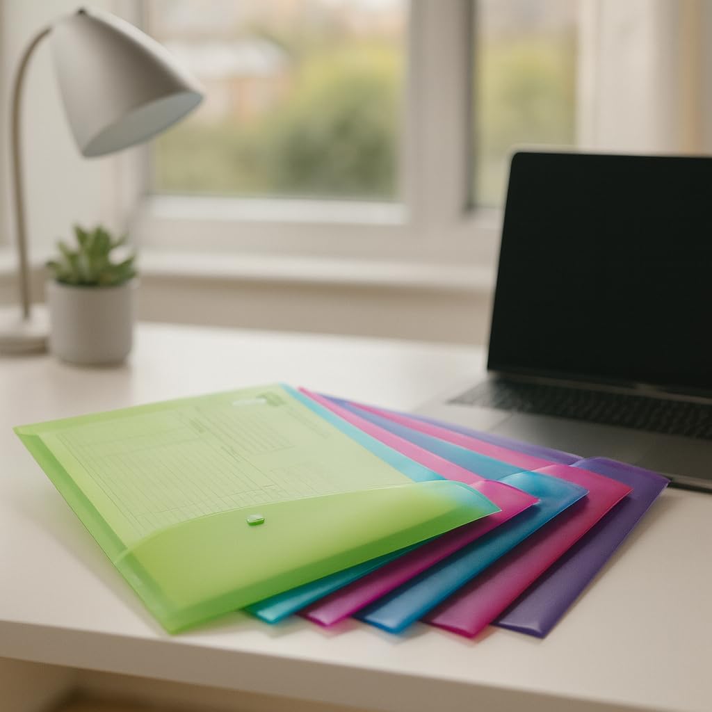 ŁATWA ORGANIZACJA — Różnorodne przezroczyste kolory umożliwiają szybką i łatwą identyfikację dokumentów oraz archiwizację według kolorów w biurze, domu lub szkole.