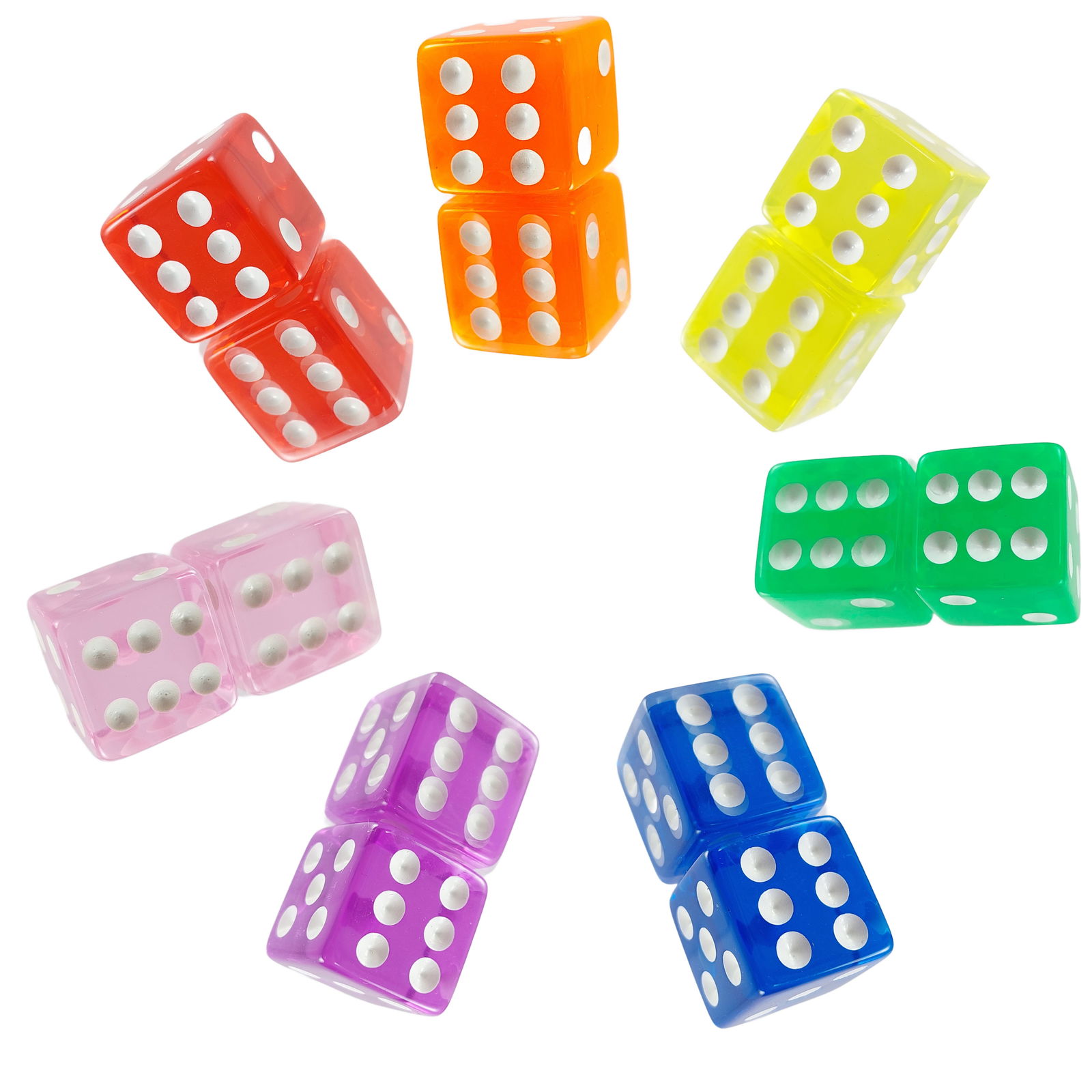 Tęczowy zestaw zawierający 7 kostek K6.