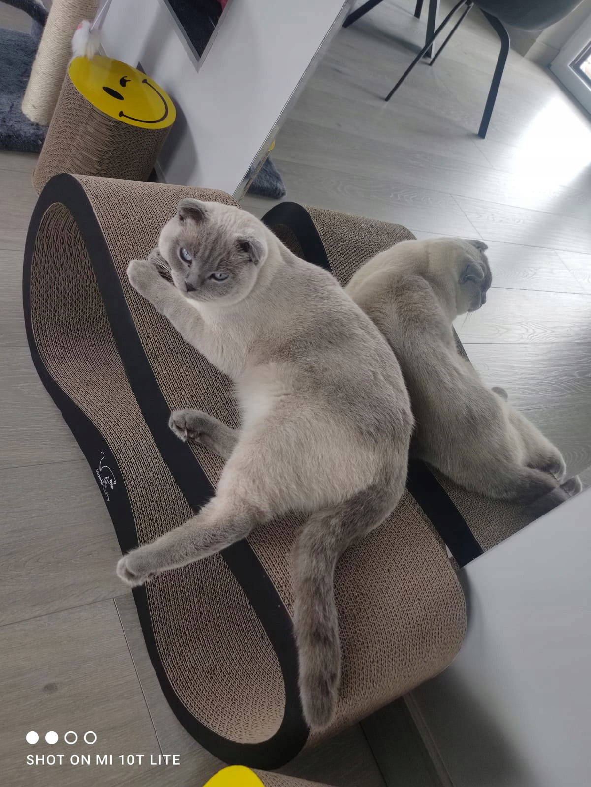 - Doskonałe miejsce do drapania: Tektura falista oferuje odpowiednią teksturę do ostrzenia pazurków, jednocześnie chroniąc Twoje meble.