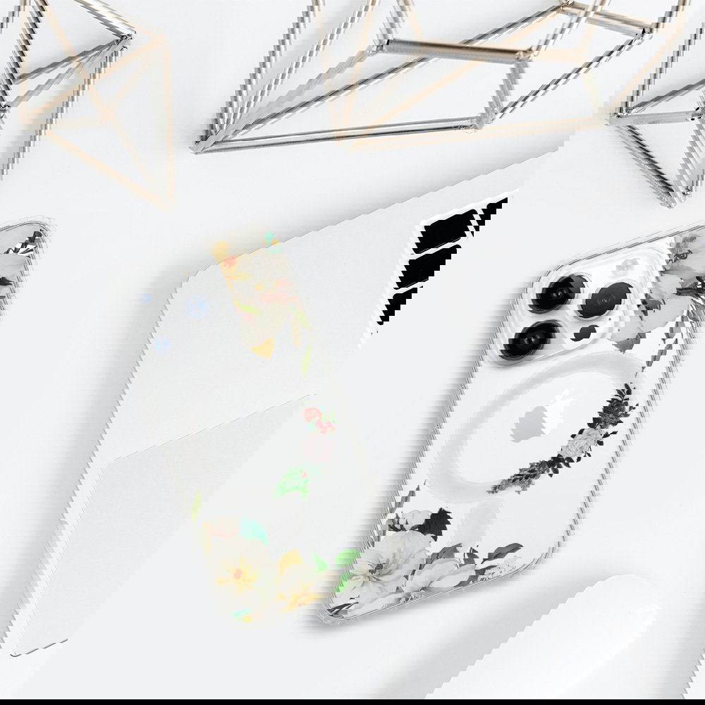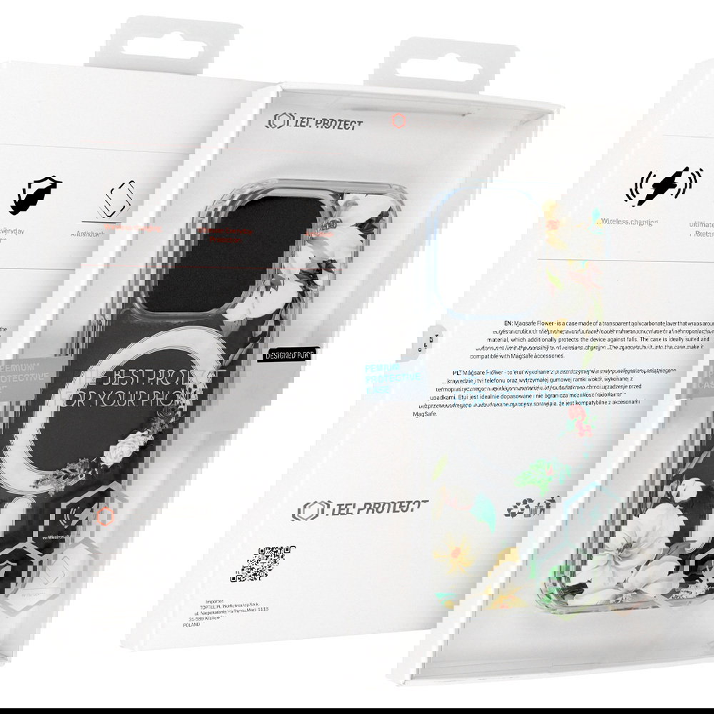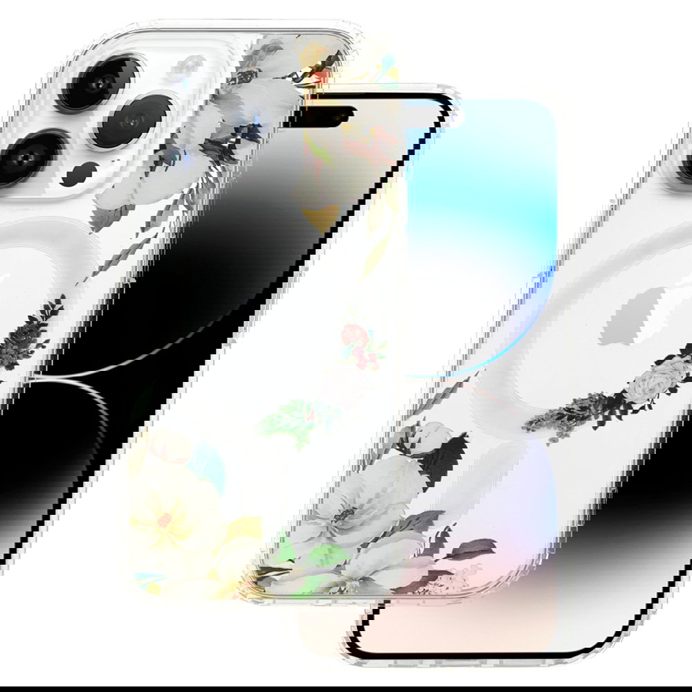 Tel Protect Flower Magsafe - to przezroczyste etui, ozdobione wyjątkowym wzorem kwiatów. Futerał zabezpiecza tył, boki oraz ekran smartfona. Wbudowane w etui magnesy sprawiają, że etui jest kompatybilne z akcesoriami Apple MagSafe.