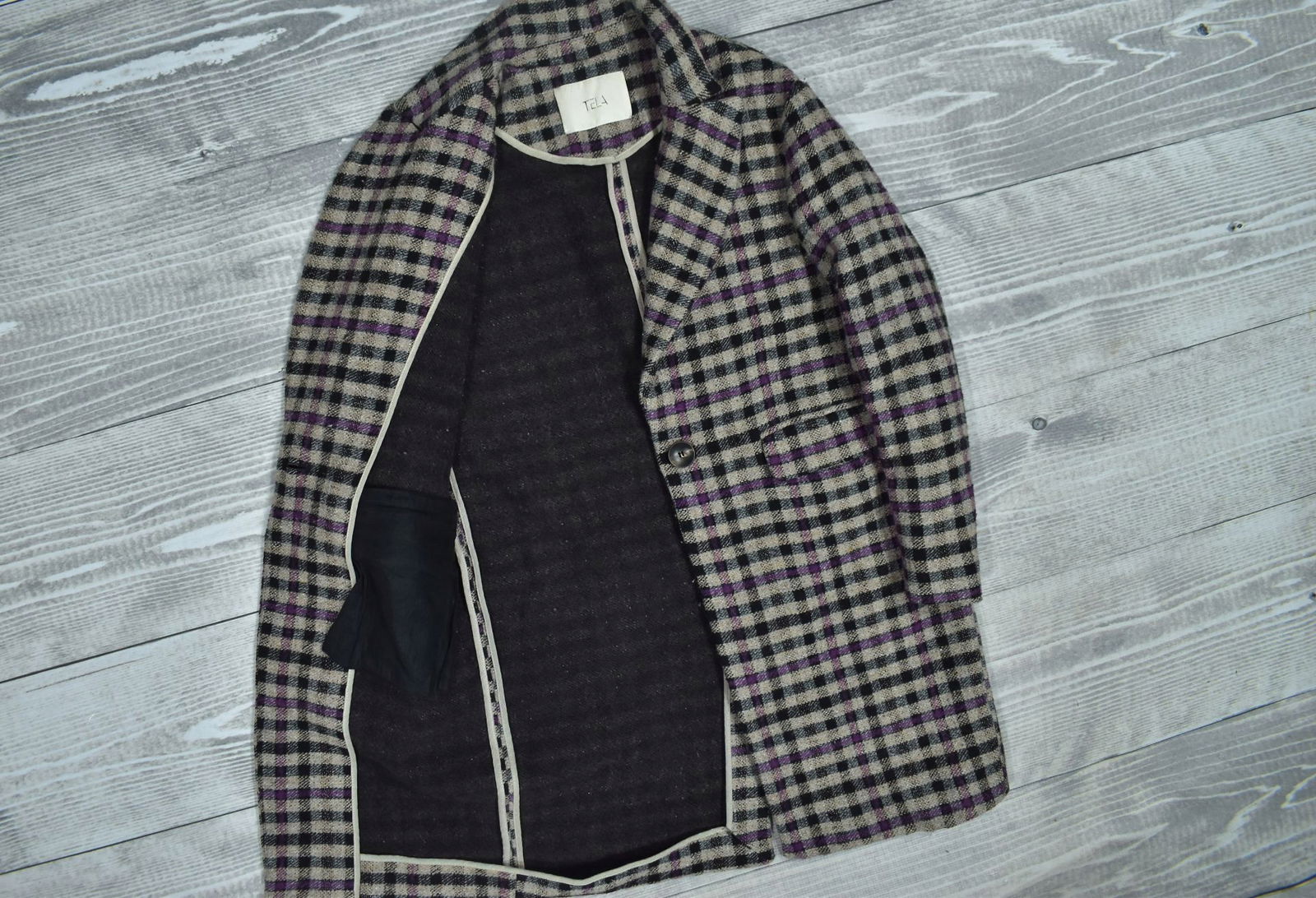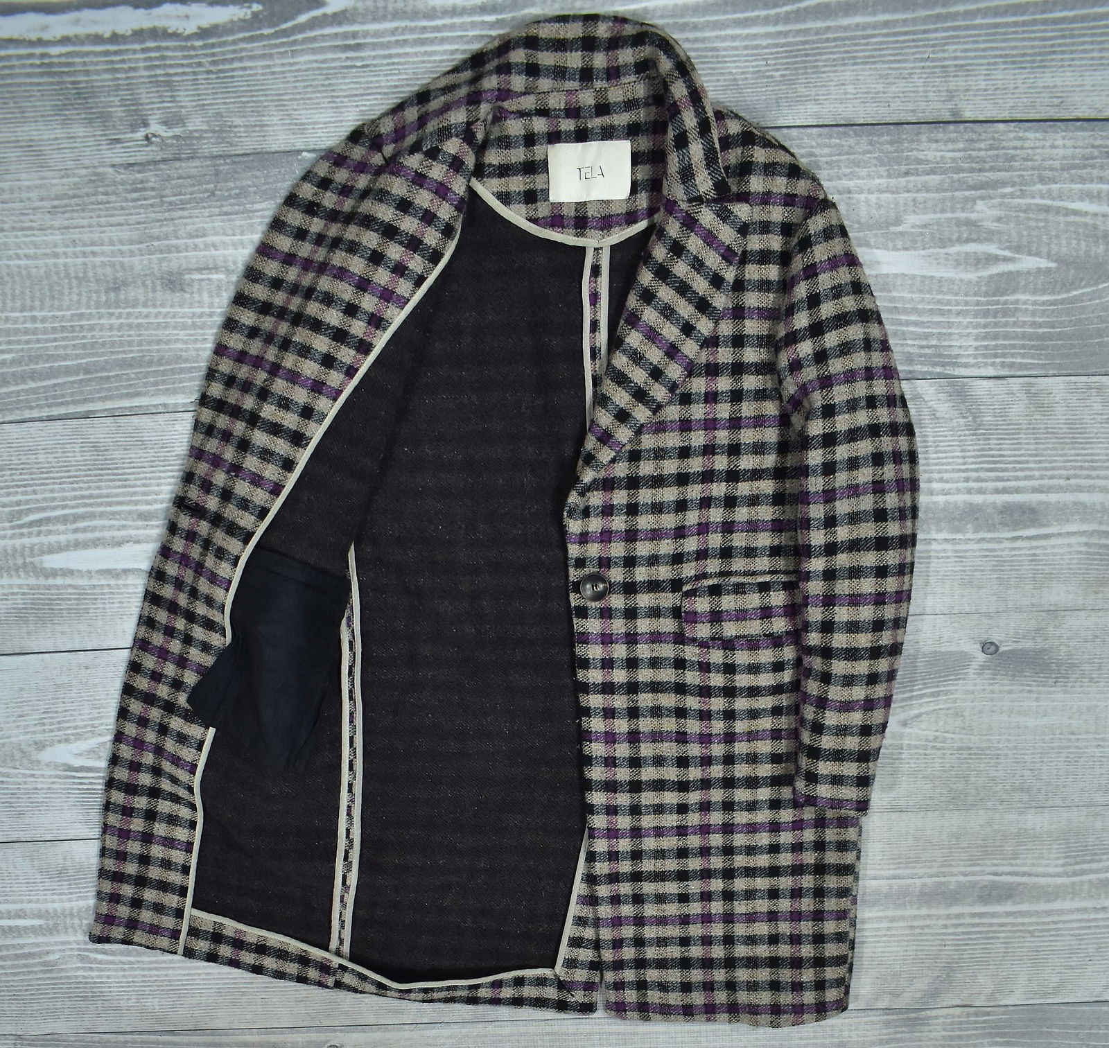 TELA 9 Wełniany Płaszcz Damski z Dodatkiem Jedwabiu 34