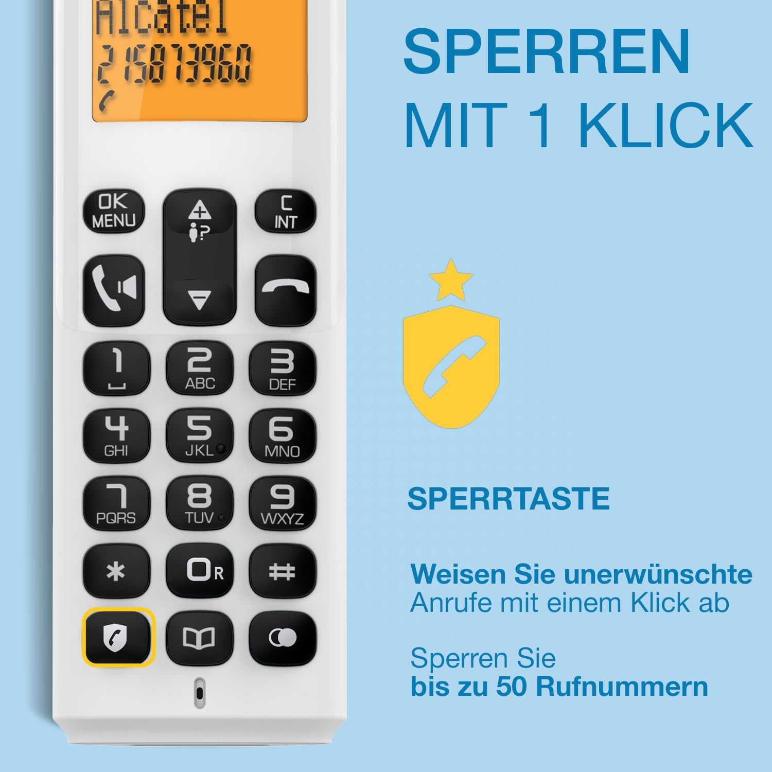- Blokuj niechciane połączenia: Telefon stacjonarny Alcatel E260 oferuje praktyczną funkcję blokowania niechcianych numerów za pomocą specjalnego przycisku. Zablokuj do 50 numerów i nie daj się więcej nachodzić.