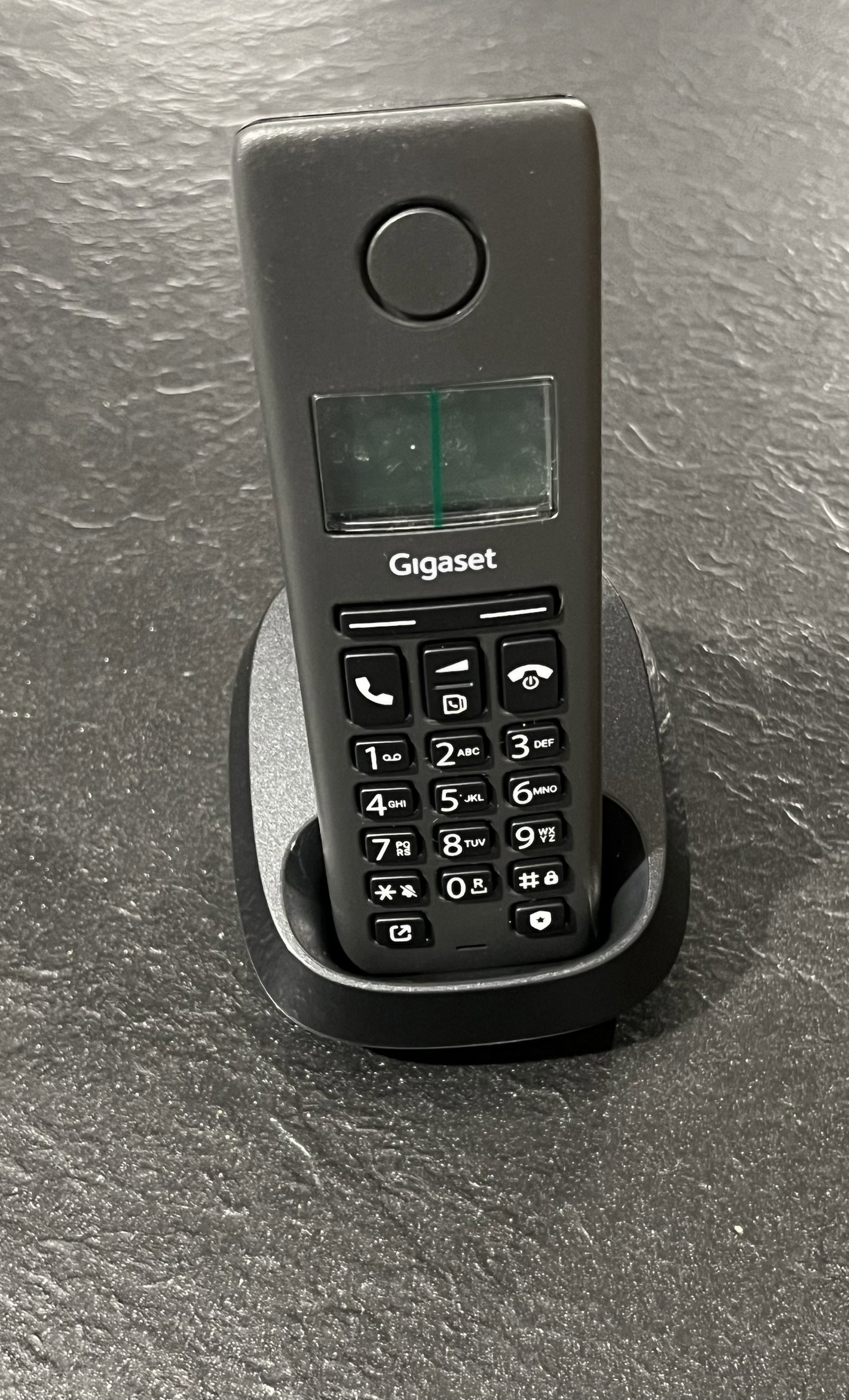 Gigaset Pure 120 – telefon bezprzewodowy z ochroną połączeń i ECO DECT – podświetlany wyświetlacz – kompatybilny z aparatami słuchowymi, antracytowo-czarny