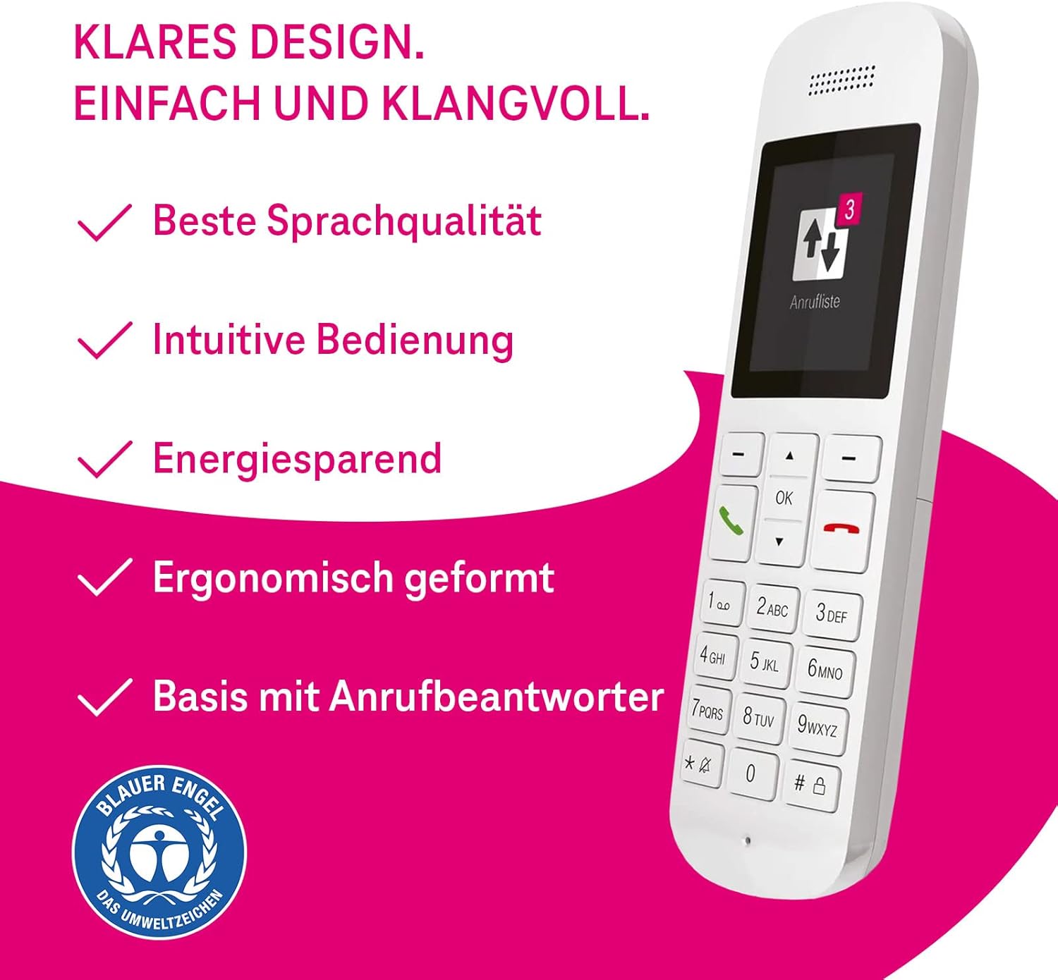 - Wyznaczaj standardy środowiskowe z certyfikatem Blue Angel: energooszczędny, niskoemisyjny i nadający się do recyklingu. Ekologiczny telefon stacjonarny z trybem ECO MODE, który automatycznie dostosowuje moc nadawania.