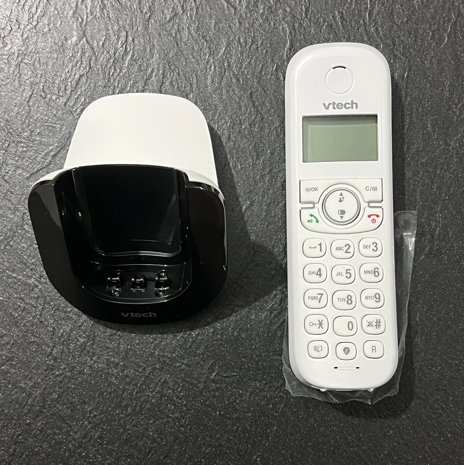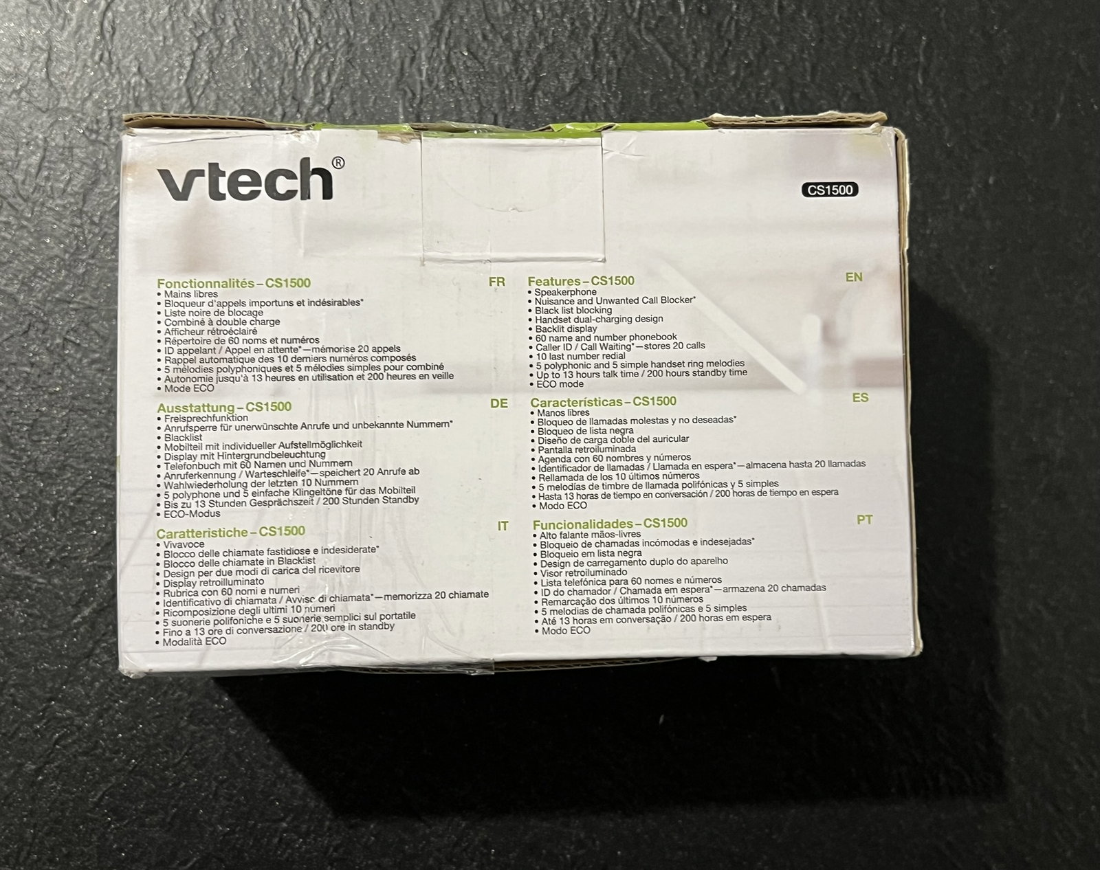 Telefon bezprzewodowy DECT Vtech CS1500 z blokadą połączeń, identyfikacją dzwoniącego/wybieraniem numeru, funkcją głośnomówiącą, podświetlanym wyświetlaczem i klawiaturą