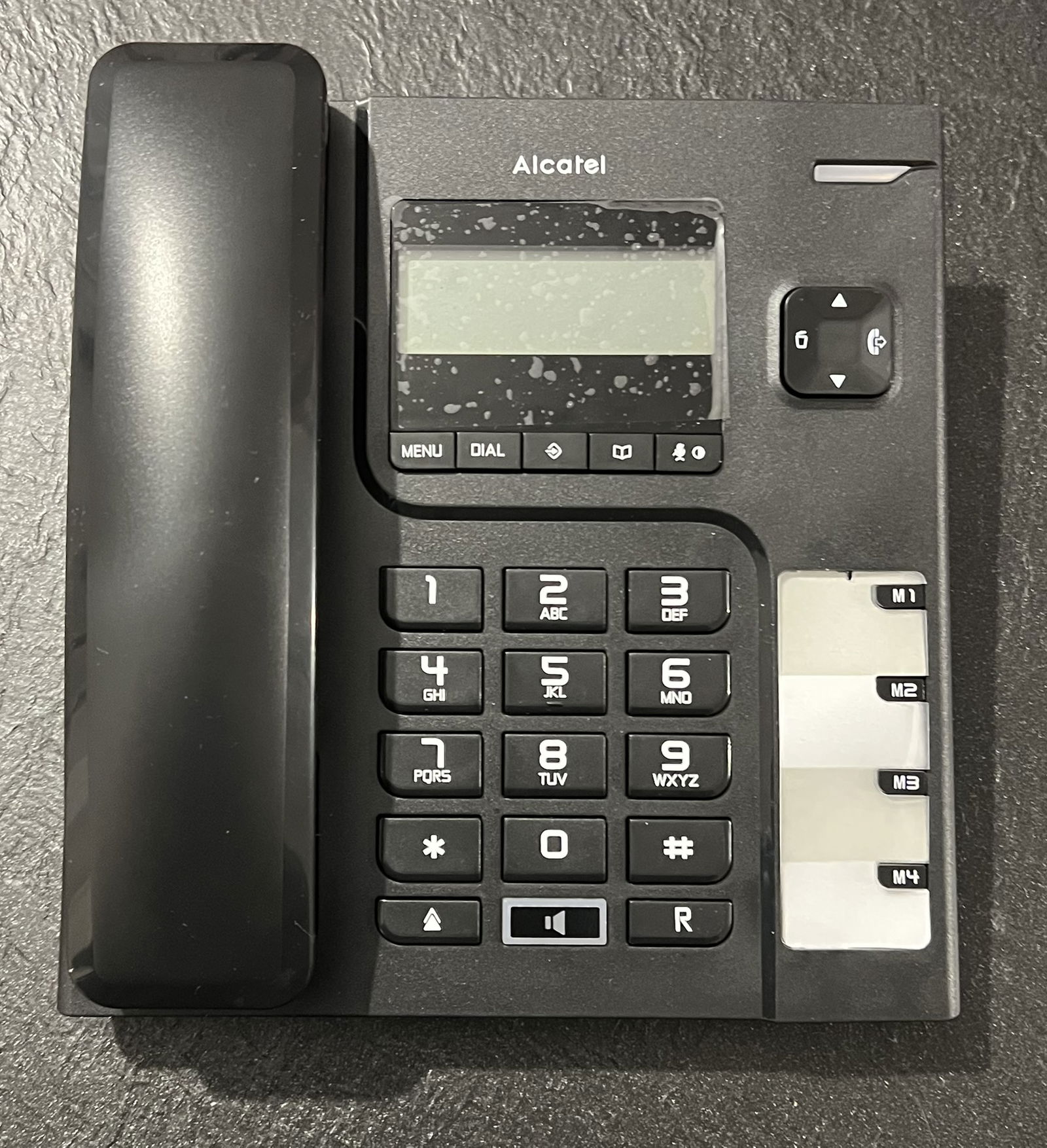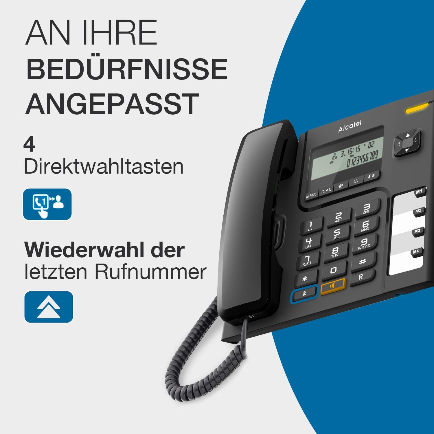 Alcatel T56 to łatwy w obsłudze telefon przewodowy z wszechstronnymi funkcjami i nowoczesnym designem, który idealnie nadaje się do montażu na ścianie.