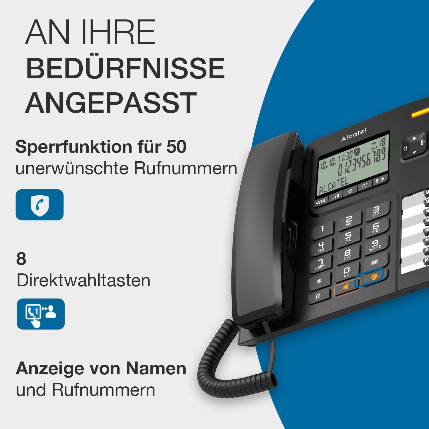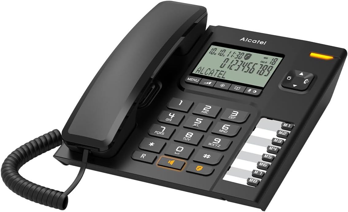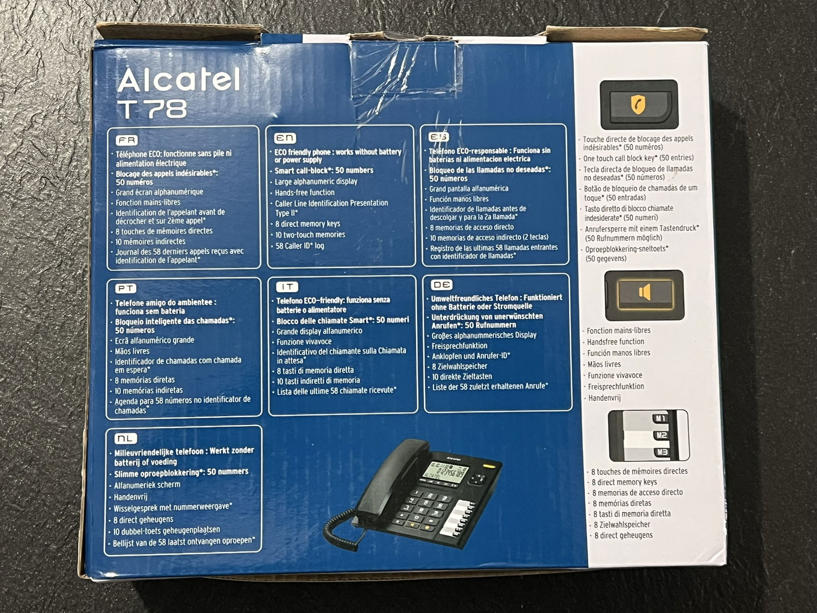 ALCATEL T78 - Telefon stacjonarny z linią przewodową - Duży wyświetlacz alfanumeryczny - Funkcja głośnomówiąca - Blokada połączeń - Wizualny wyświetlacz połączeń - Przycisk ponownego wybierania - 8 przycisków bezpośredniego wybierania - Czarny