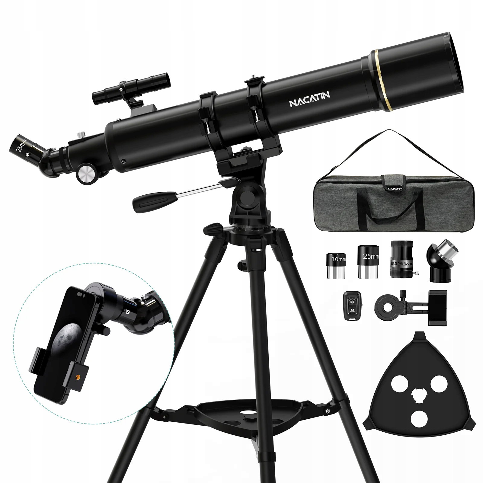 Dzięki lekkiej i przenośnej konstrukcji z regulowanym statywem i akcesoriami, teleskop sprawdza się zarówno podczas nocnych obserwacji, jak i podróży.