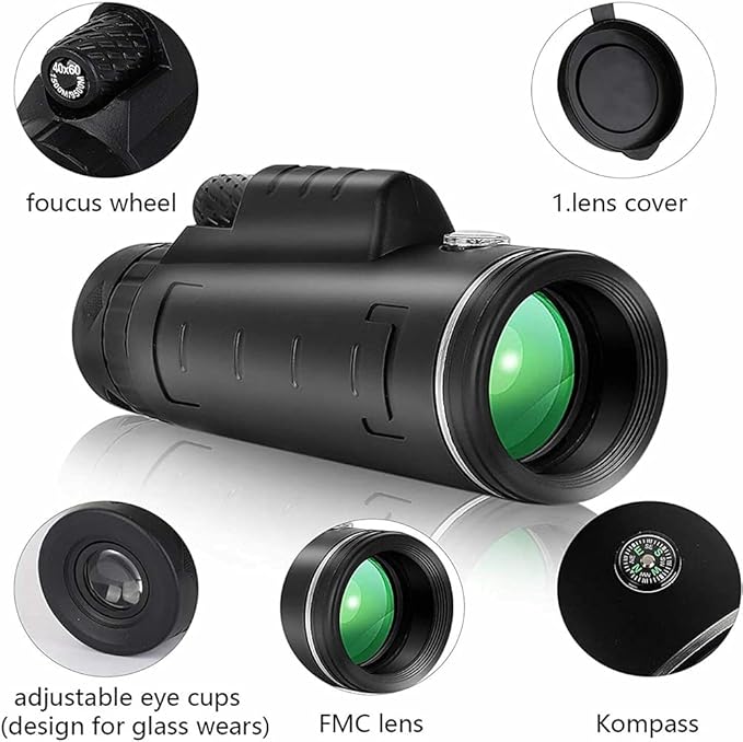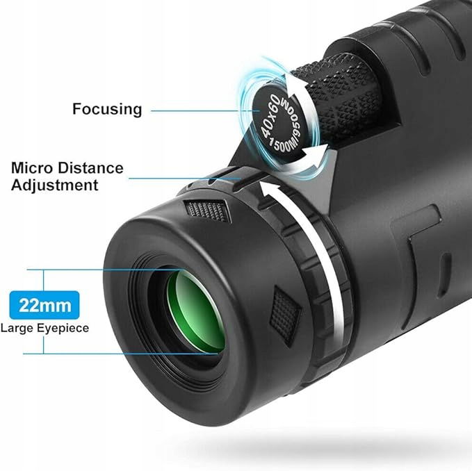 Zobacz rzeczy 40 razy bliżej i stają się wyraźniejsze i z obiektywem 60 mm i obiektywem 16 mm. Im większy obiektyw, tym więcej światła wpada do monokular i tym obraz.