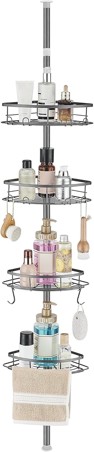 Regulowana wysokość półki prysznicowej: Dekoracyjna półka prysznicowa ma regulowaną wysokość od 180 do 213 cm dzięki prętowi ze stali nierdzewnej, możesz dostosować wysokość do swoich potrzeb; Można jej używać uniwersalnie w wannie i pod prysznicem.