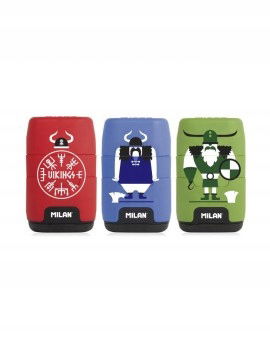 Połączenie gumki z podwójną temperówką w jednym. Z jednej strony podwójna temperówka na cienkie i grube kredki i ołówki. Z drugiej miękka gumka syntetyczna, a po środku pojemnik na ścinki. Wszystko w nowoczesnym designie nawiązującym do kolekcji VIKINGS. Temperówka posiada ostre i wytrzymałe ostrza ze stali węglowej dzięki czemu idealnie nadaje się do wszystkich rodzajów ołówków.