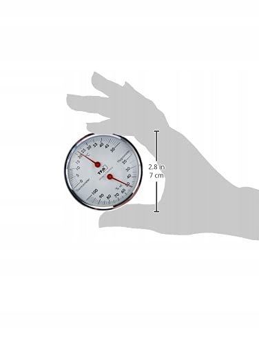 - ⭐ WYRAŹNY ANALOGOWY WYŚWIETLACZ: Łatwy i wyraźny odczyt dzięki czerwonym wskazówkom. Optymalne zakresy wilgotności i temperatury są intuicyjnie widoczne.