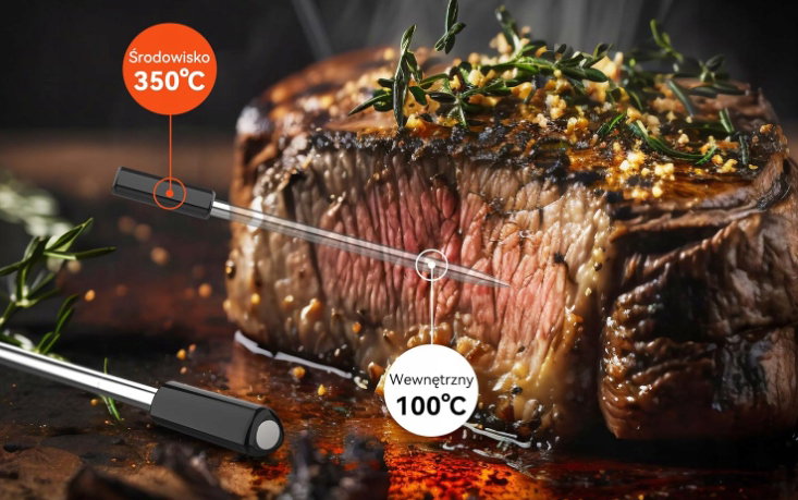 - ✴️?????? ? ???ł????: Ten termometr do mięsa Bluetooth jest wyposażony w czujnik klasy przemysłowej i zapewnia dokładne odczyty do ±0,1°C dzięki pomiarowi co sekundę i transmisji danych w czasie rzeczywistym do aplikacji.