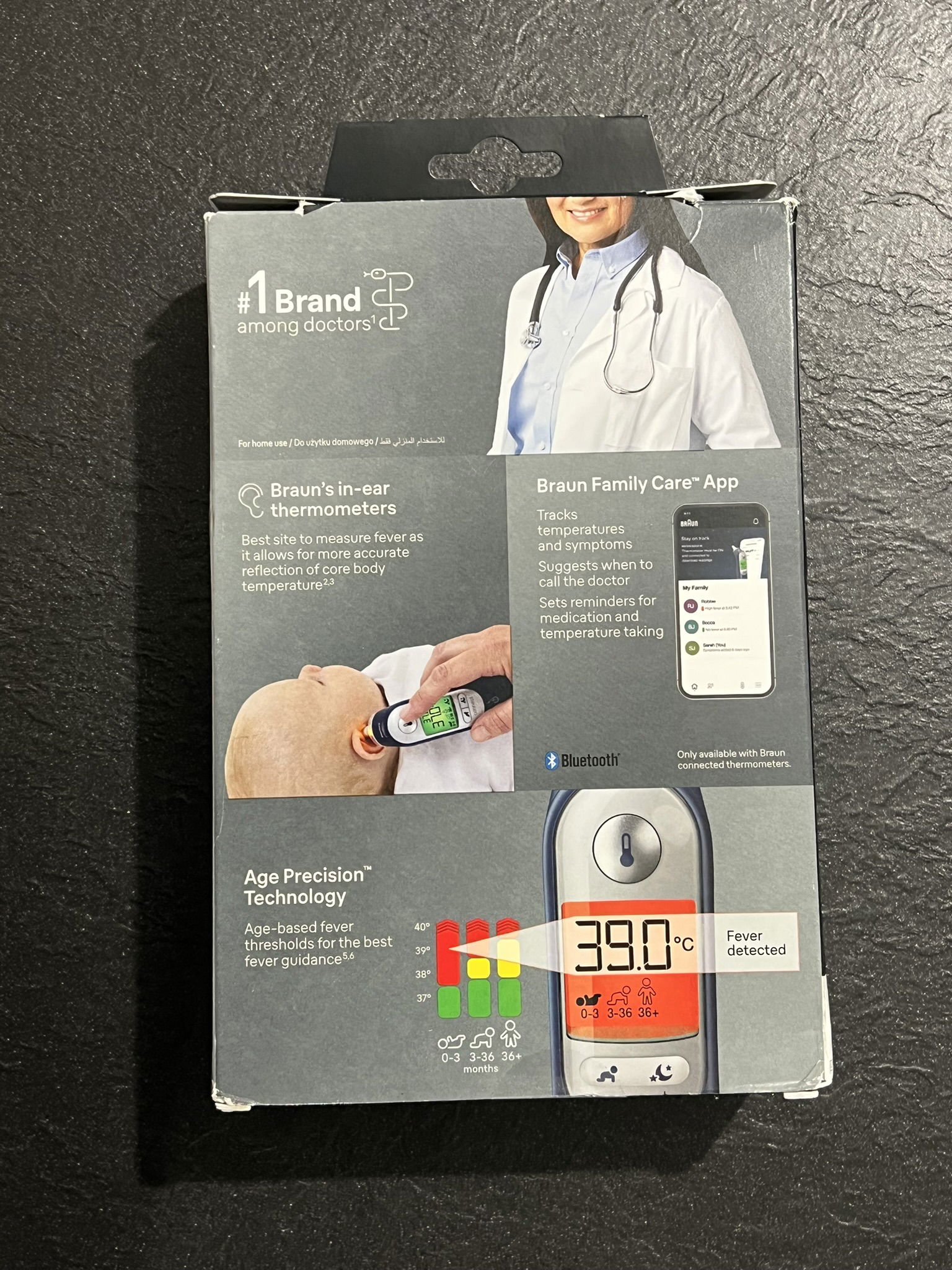 - Marka nr 1 wśród lekarzy: termometr douszny Braun ThermoScan 7+ connect został klinicznie przetestowany i zapewnia dokładne odczyty w ciągu kilku sekund. W połączeniu z dołączoną aplikacją Braun Family Care możesz płynnie i niezawodnie monitorować postęp choroby w swojej rodzinie w domu.