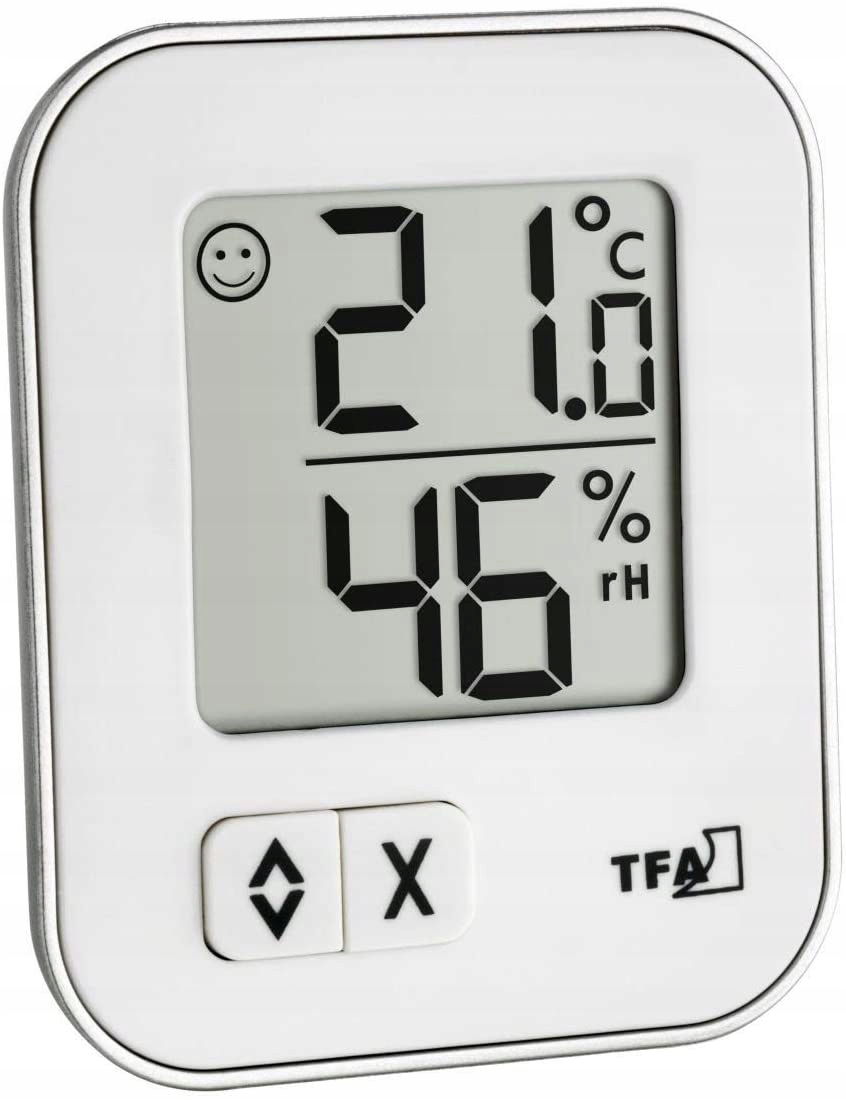 Termohigrometr domowy TFA 30.5026 MOXX elektroniczny wewnętrzny. Instrument umożliwia pomiar temperatury i wilgotności powietrza wewnątrz pomieszczeń. Termometr posiada, m.in. funkcję pamięci wartości ekstremalnych i wskaźnik komfortu termiczno - wilgotnościowego.