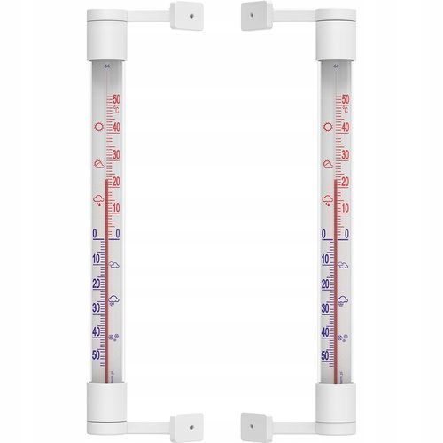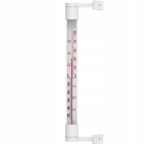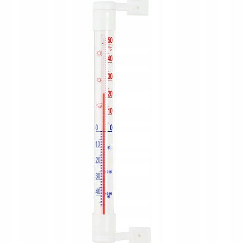 Termometr zaokienny. Posiada specjalne końcówki z taśmą klejącą umożliwiają przymocowanie termometru (bez konieczności wiercenia otworów) do opraw okiennych wykonanych z tworzyw sztucznych, aluminiowych lub drewnianych. Dodatkowo uchwyty posiadają otwór umożliwiający przykręcenia termometru. Skala termometru nadrukowana jest na tekturowej podkładce, umieszczonej w szklanej rurce, z dwóch stron zakończonej plastikowymi korkami.