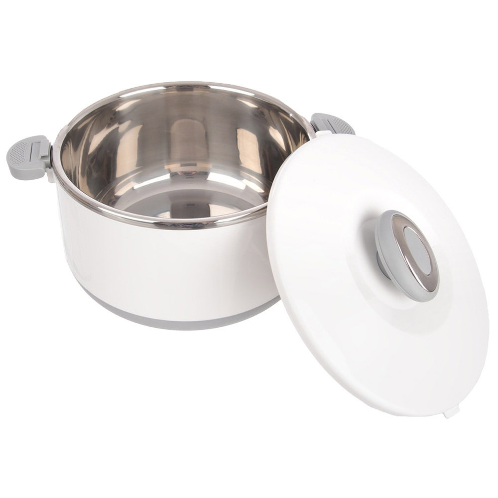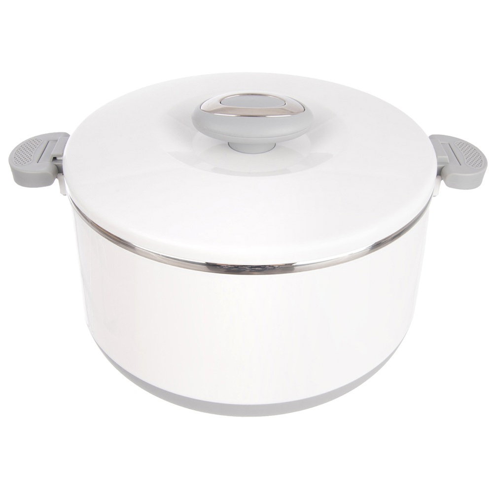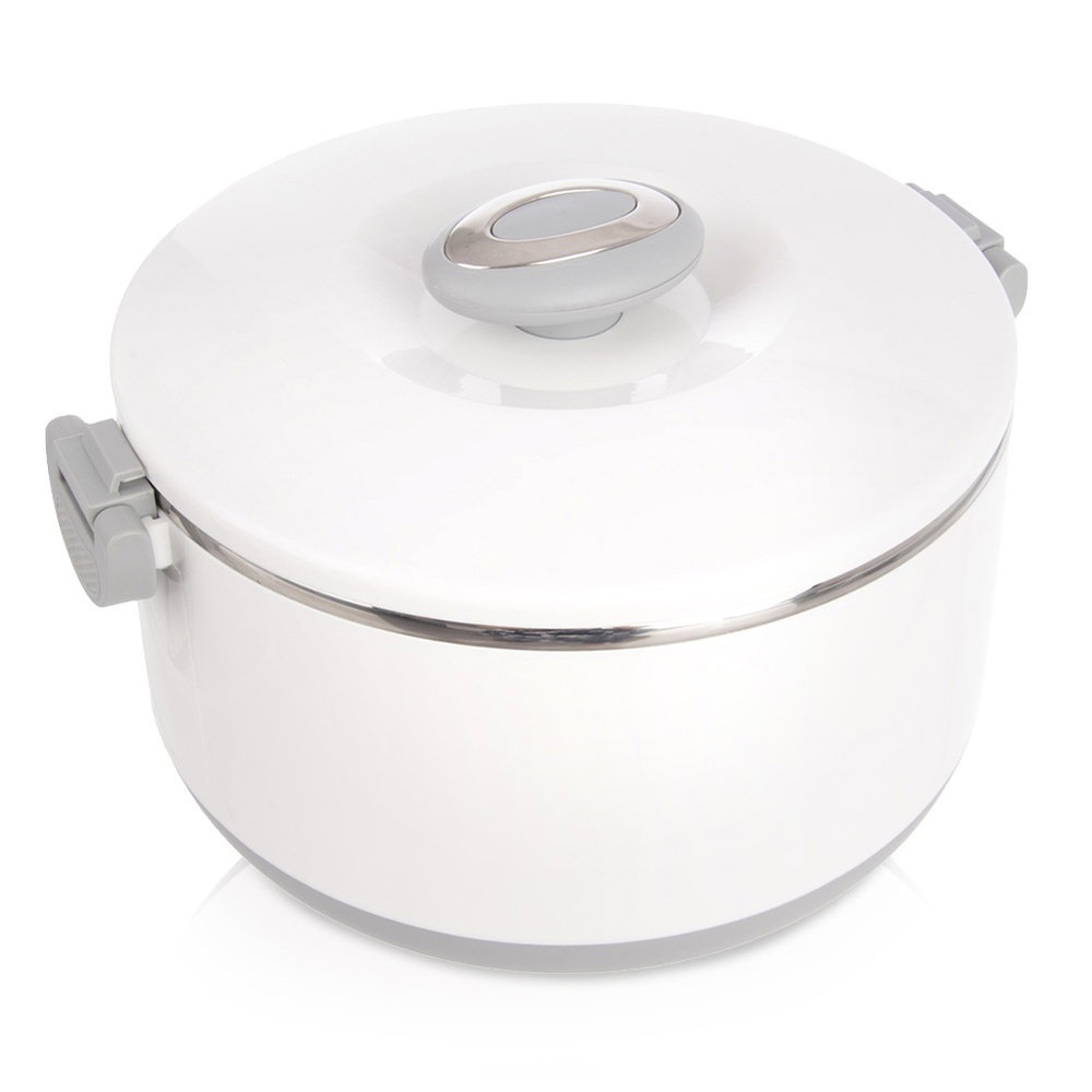 Wykonana ze stali nierdzewnej - Termomisa wewnątrz wykonana jest ze stali nierdzewnej. Zewnętrzna obudowa wykonana jest z tworzywa w białym kolorze. Uchwyty są w kolorze szarym.