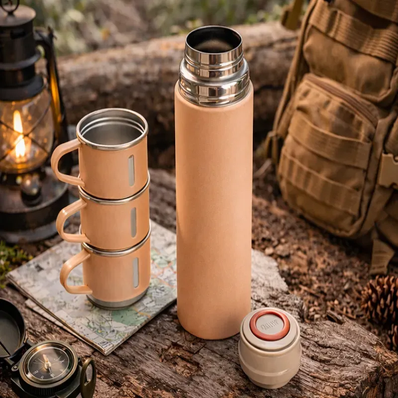 Ten termos świetnie sprawdzi się podczas biwaków i pieszych wędrówek. Dzięki swojej poręcznej wielkości łatwo zmieści się w plecaku, a solidna konstrukcja zapewnia wytrzymałość nawet w trudniejszych warunkach. Niezależnie od tego, czy jesteś w górach, lesie czy na kempingu – zawsze masz pod ręką ciepły napój, którym możesz podzielić się z innymi dzięki dołączonym kubkom.