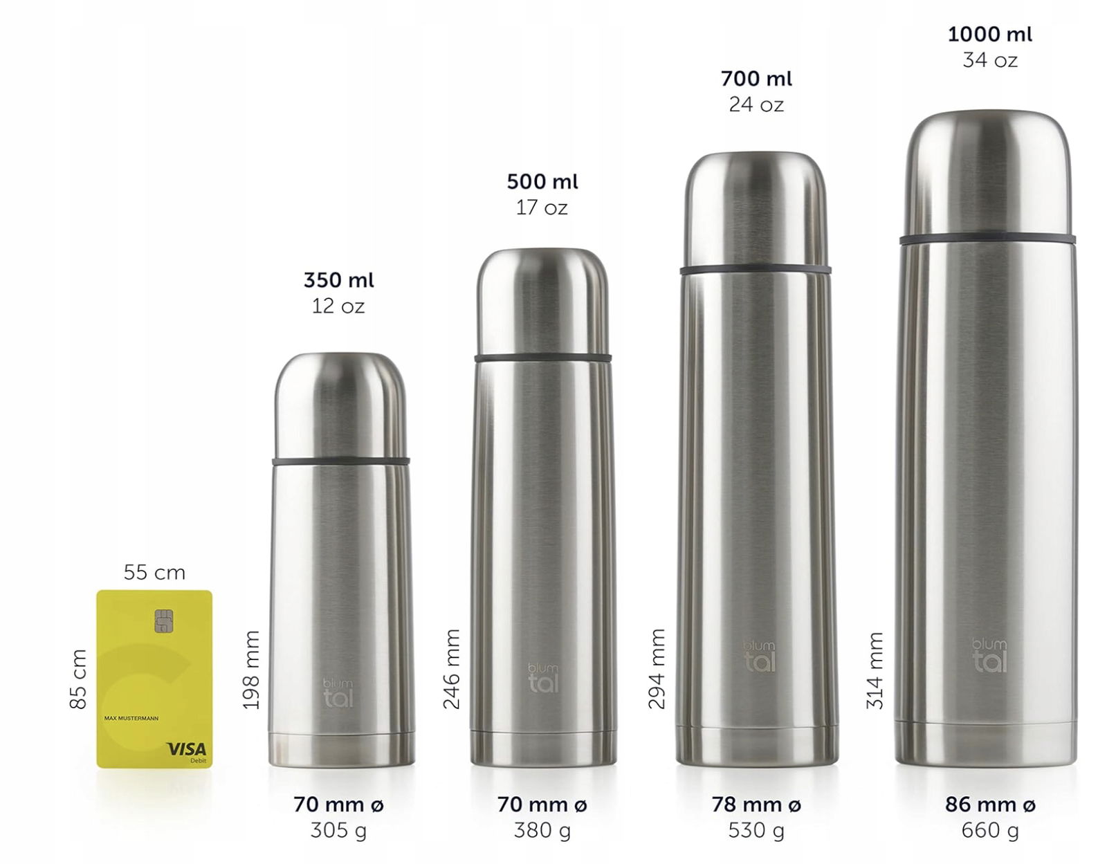 Nasze butelki izolacyjne Blumtal są wykonane z wytrzymałej, nierdzewnej stali, która jest wyjątkowo trwała.