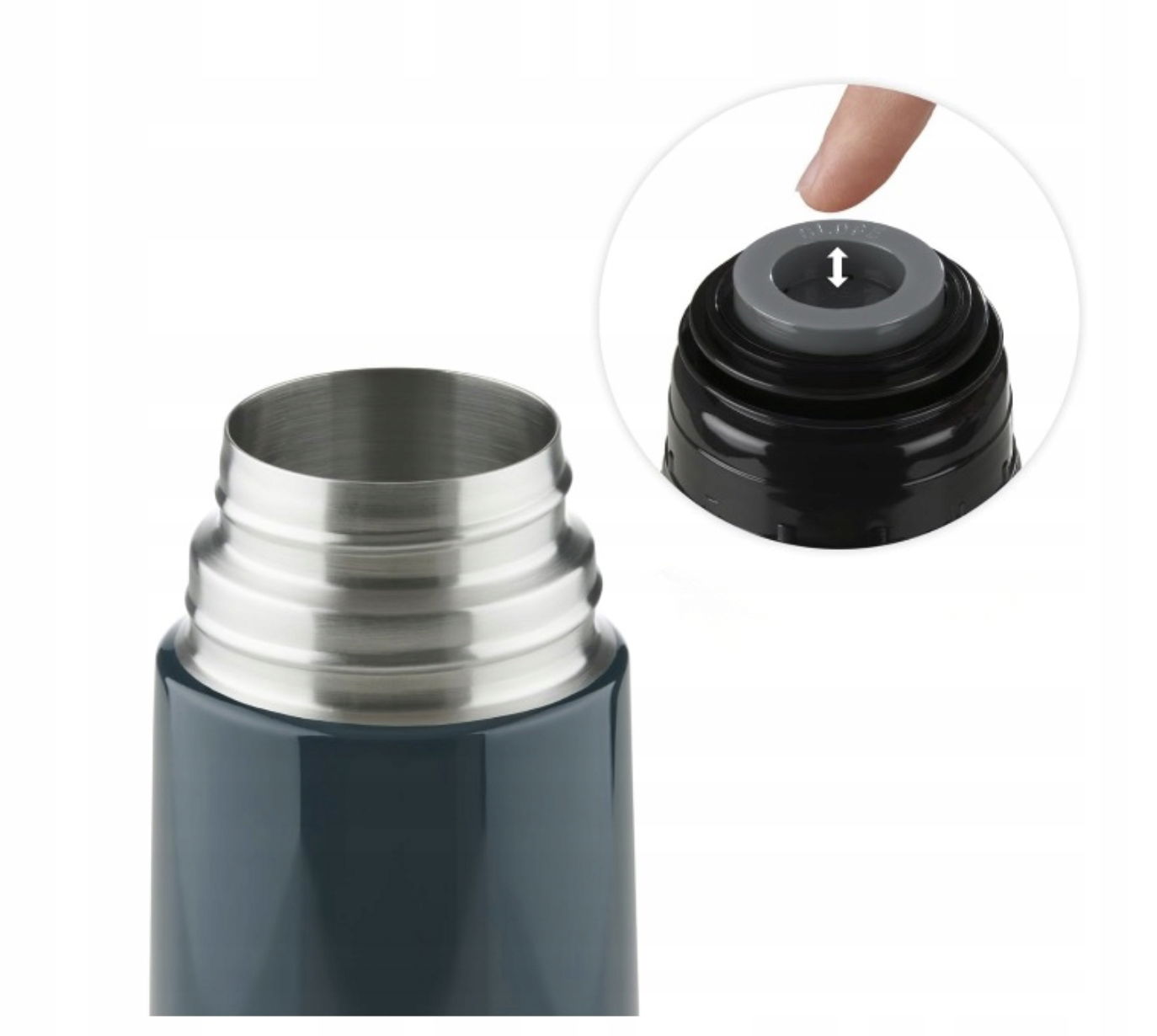 Hermetyczne zamknięcie naszych termosów posiada praktyczny mechanizm Quick-Press, który natychmiast zamyka termos po dokręceniu pokrywki
