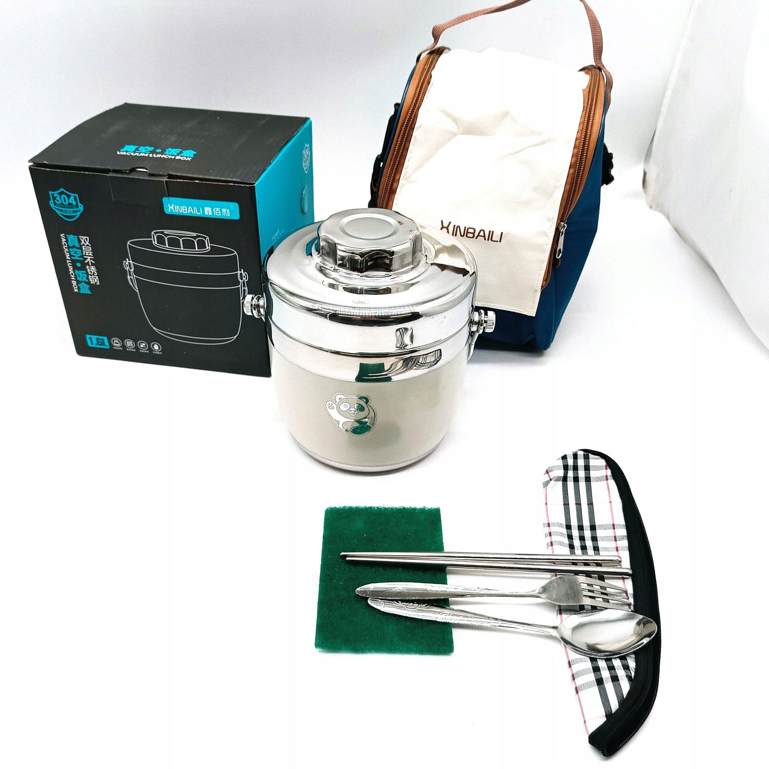 W zestawie: 1x pojemnik termiczny, 1x zestaw sztućców, 1x torba na przybory, 1x torba transportowa