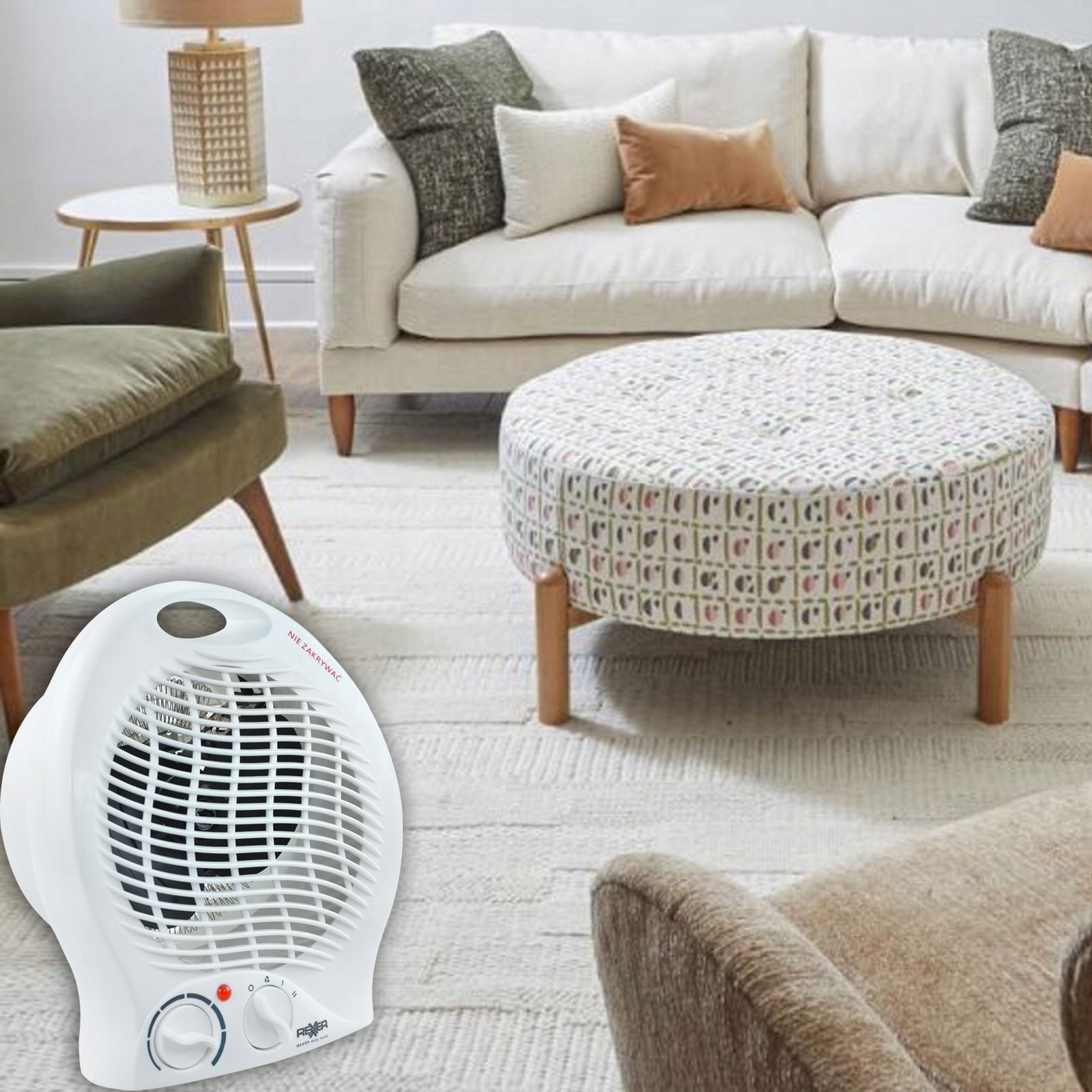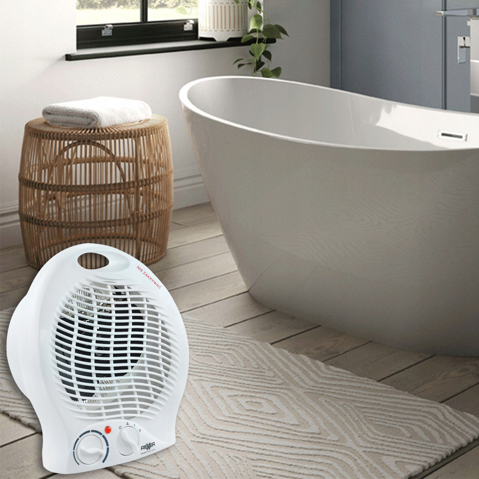 - Funkcje urządzenia: termostat, nawiew zimnego powietrza, nawiew ciepłego powietrza