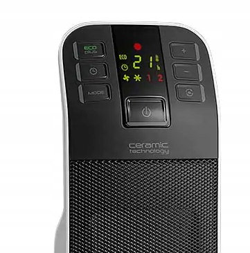 - Termowentylator posiada dotykowy panel sterowania oraz wyświetlacz ułatwiający regulację w zakresie od 16°C - 32°C