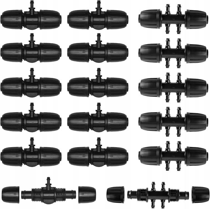 Zawartość opakowania: Zestaw do nawadniania jest wyposażony w 10 szt. złączek trójdrożnych, 5 szt. złączek sześciodrożnych.