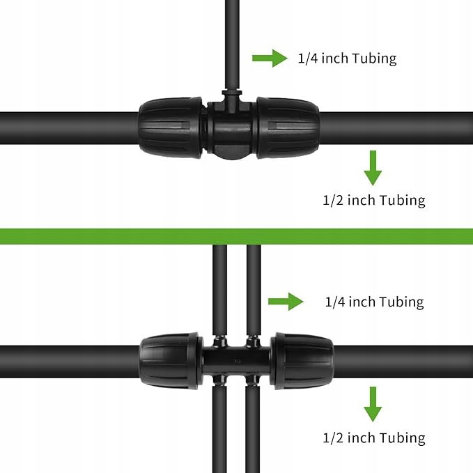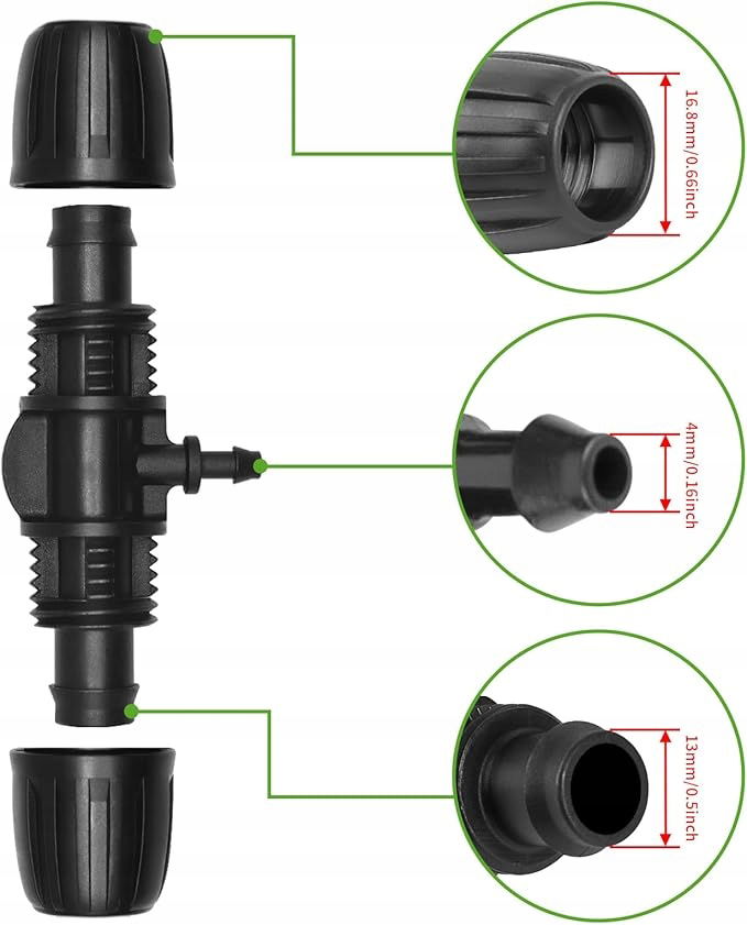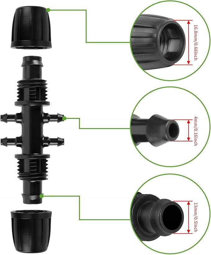 Rozmiar odpowiedni: nadaje się do węża 1/2 cala (1/2 cala ID x 0,6-0,63 cala OD) do rury nawadniającej 1/4 cala.